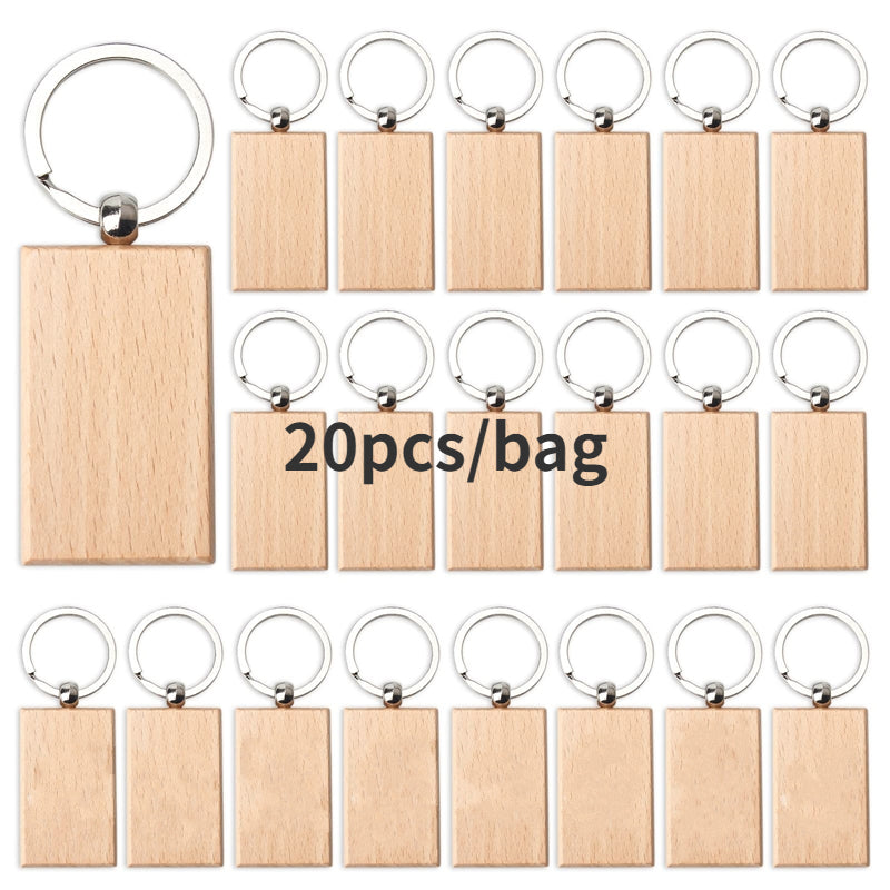 20 ta DIY bo'sh yog'och kalit zanjir pendantlari to'plami, shaxsiy kalit halqalarini yasash uchun mustahkam ranglarda