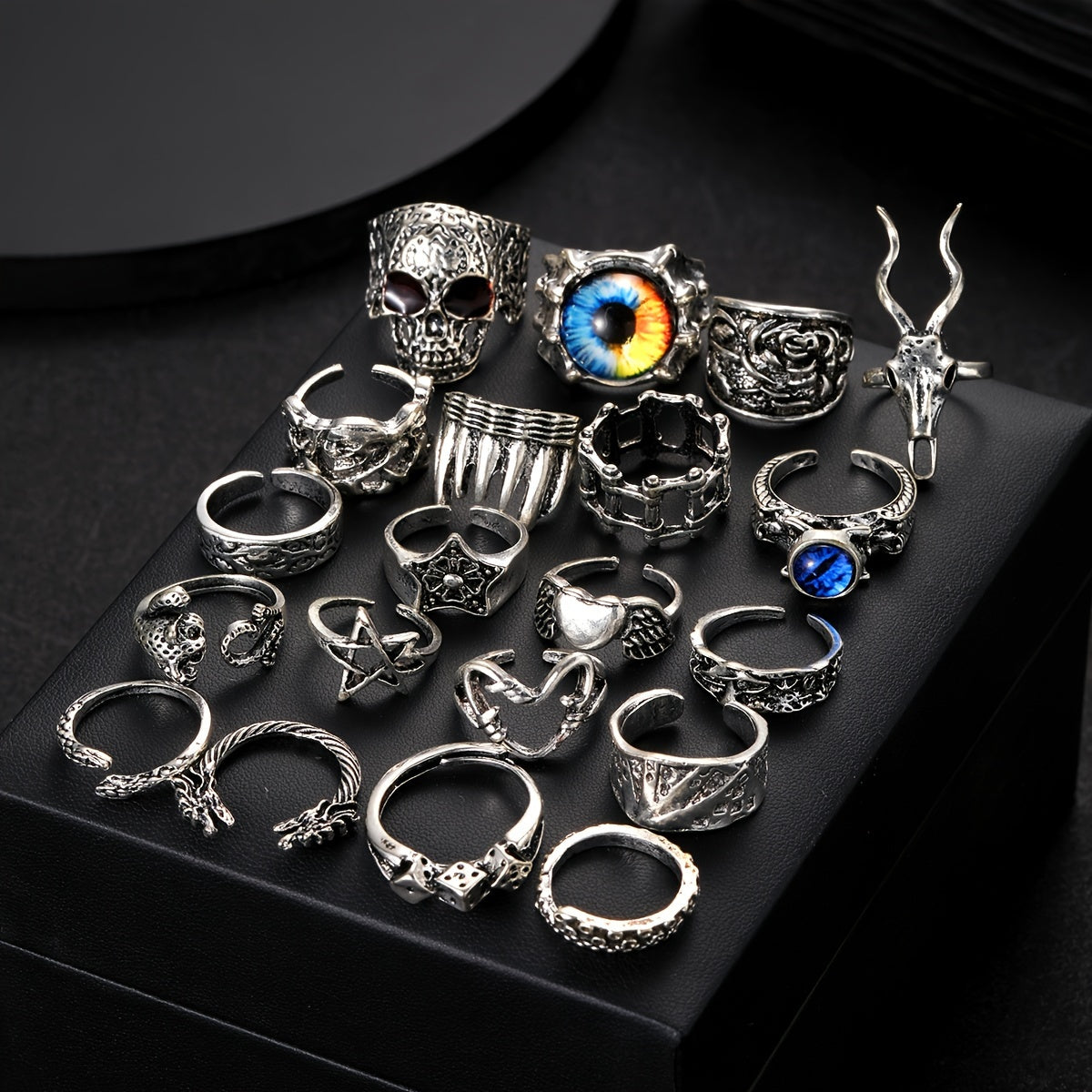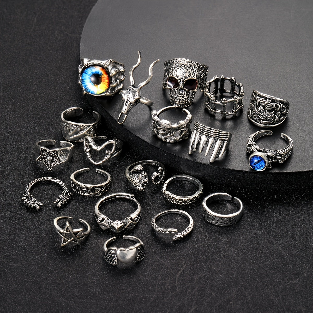 20 ta Gotik Qulupnay Ko'zli Demon Boshli Tovuq Antler Punk Halqalari Halloween Partiyalari, Festivalar va Har Kunlik Kiymak Uchun. Sovg'alar uchun ajoyib.
