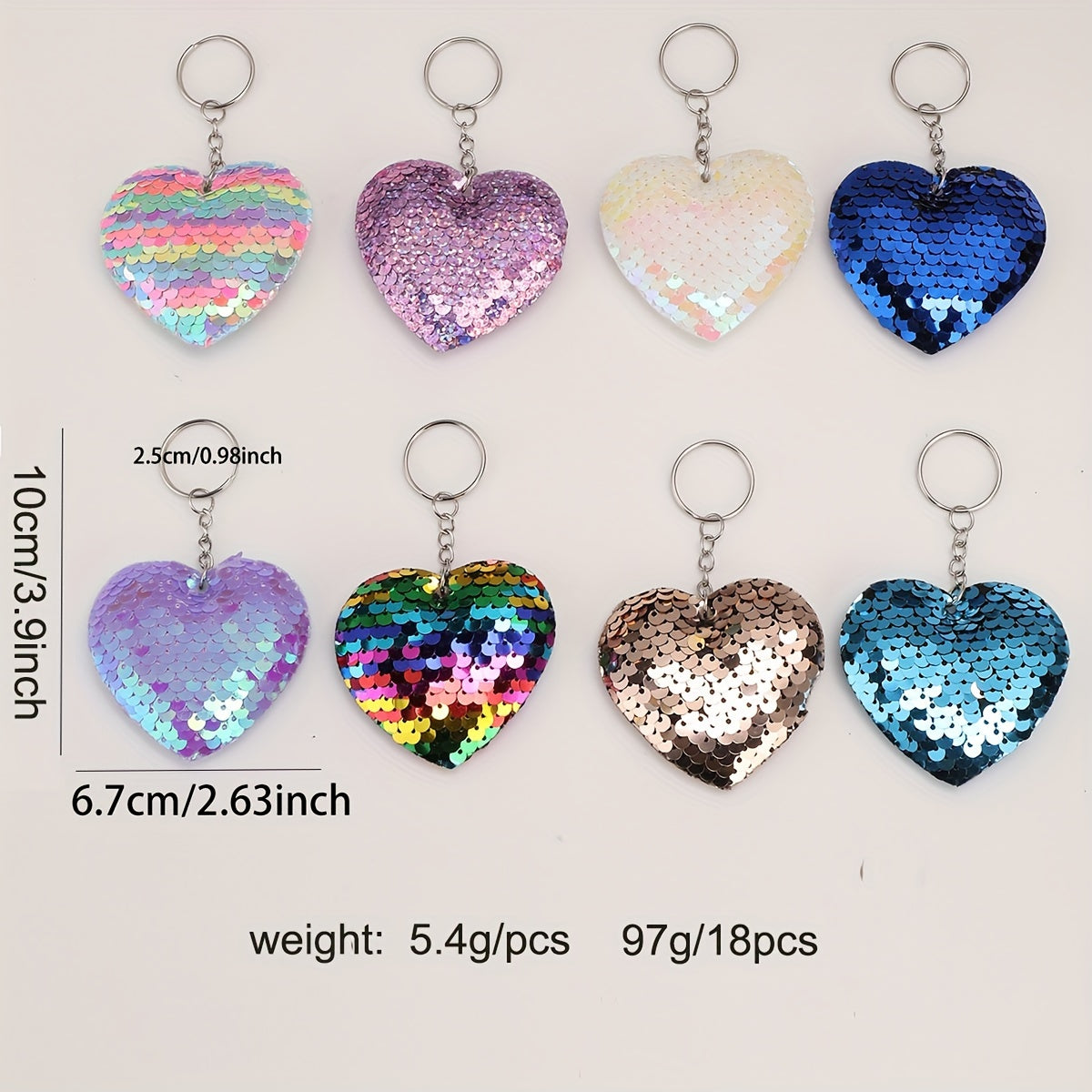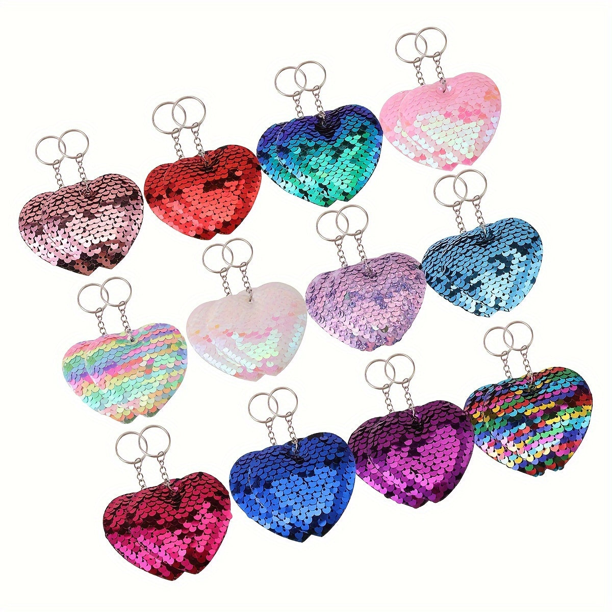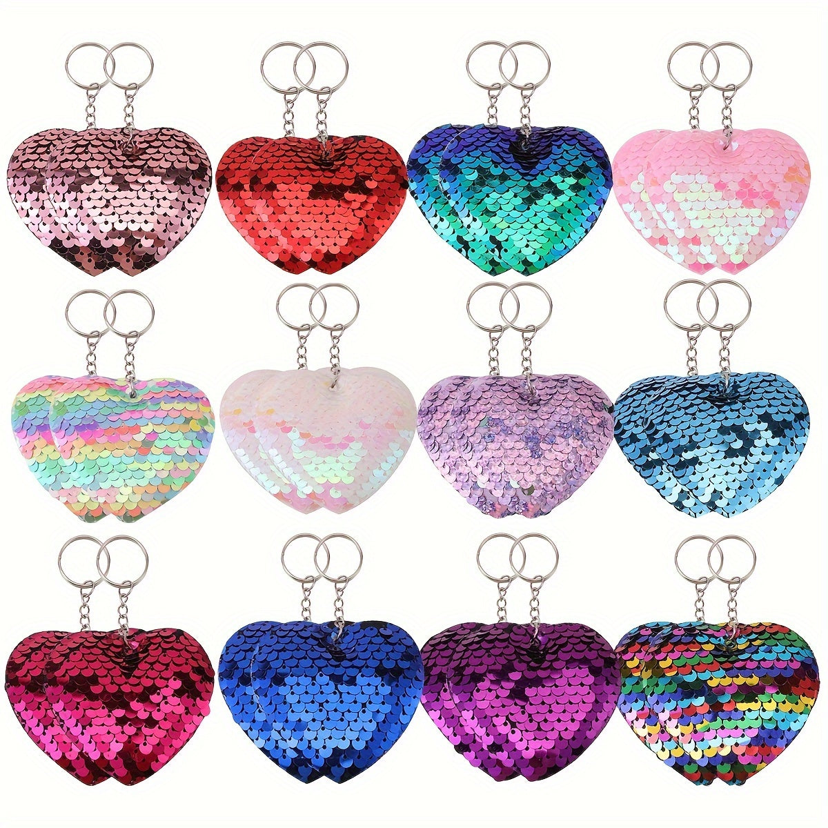 24 ta porloq sequins yurak kalit zanjirlari to'plami - sumkalar va ruksaklar uchun ikki tomonlama, multfilm mavzusidagi metall charmalar bilan - partiya sovg'alari va tug'ilgan kun sovg'alari uchun ideal