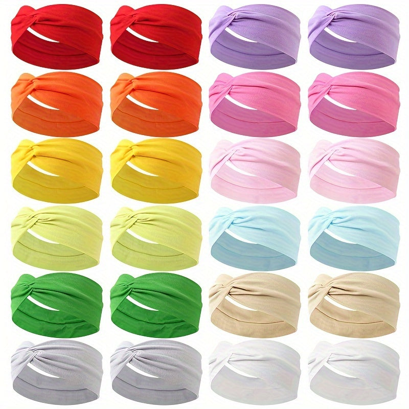 24 ta to'liq rangli keng qirrali bosh bandlar to'plami, sirg'almas elastik, teri so'radigan, yoga, sport zal, sport uchun
