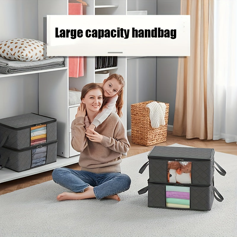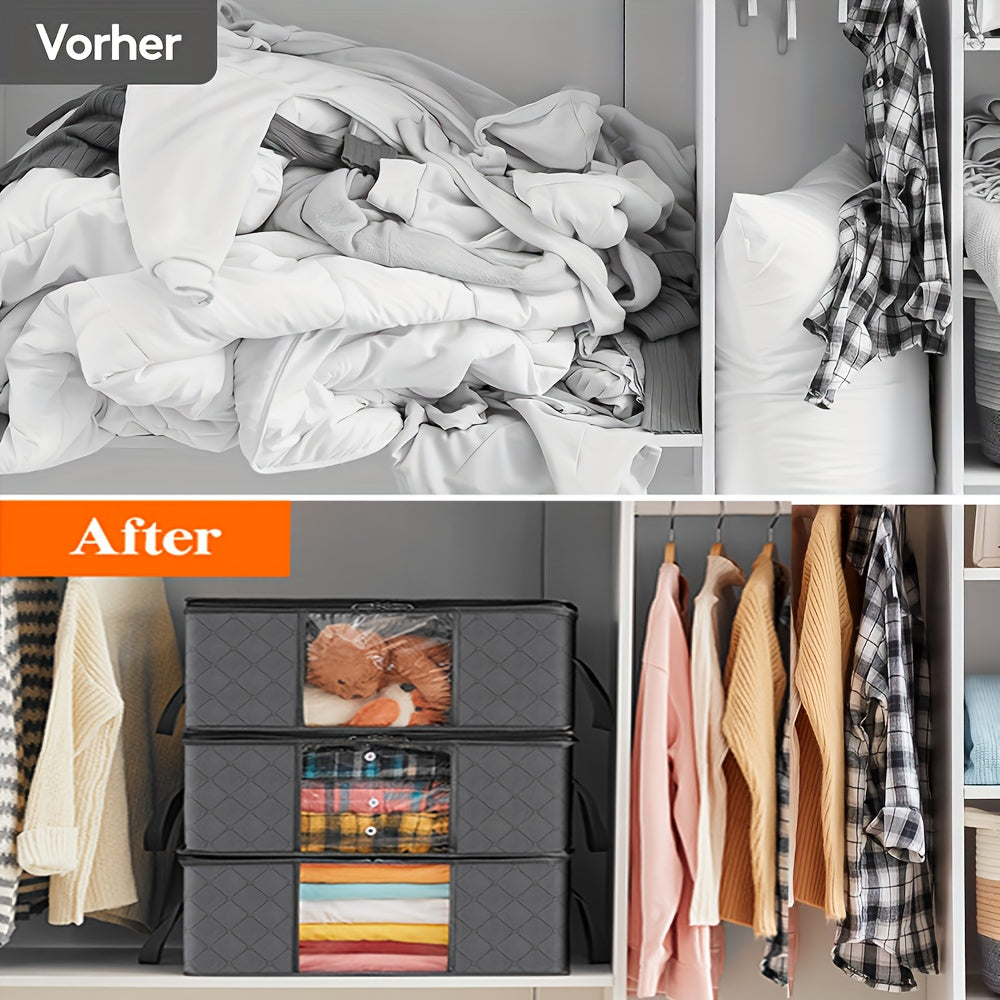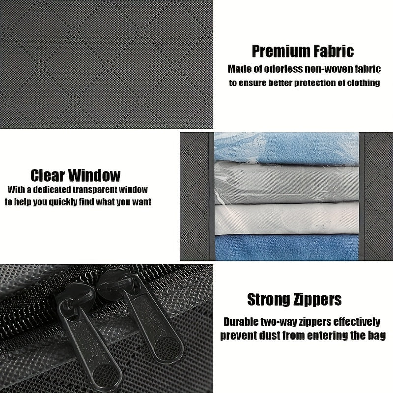 3 ta qora mato saqlash sumkasi to'plami, ochiq oynali, 35L yig'iladigan kiyimlar tashkilotchilari, yotadigan joy osti shkaflar uchun, yotoqxona