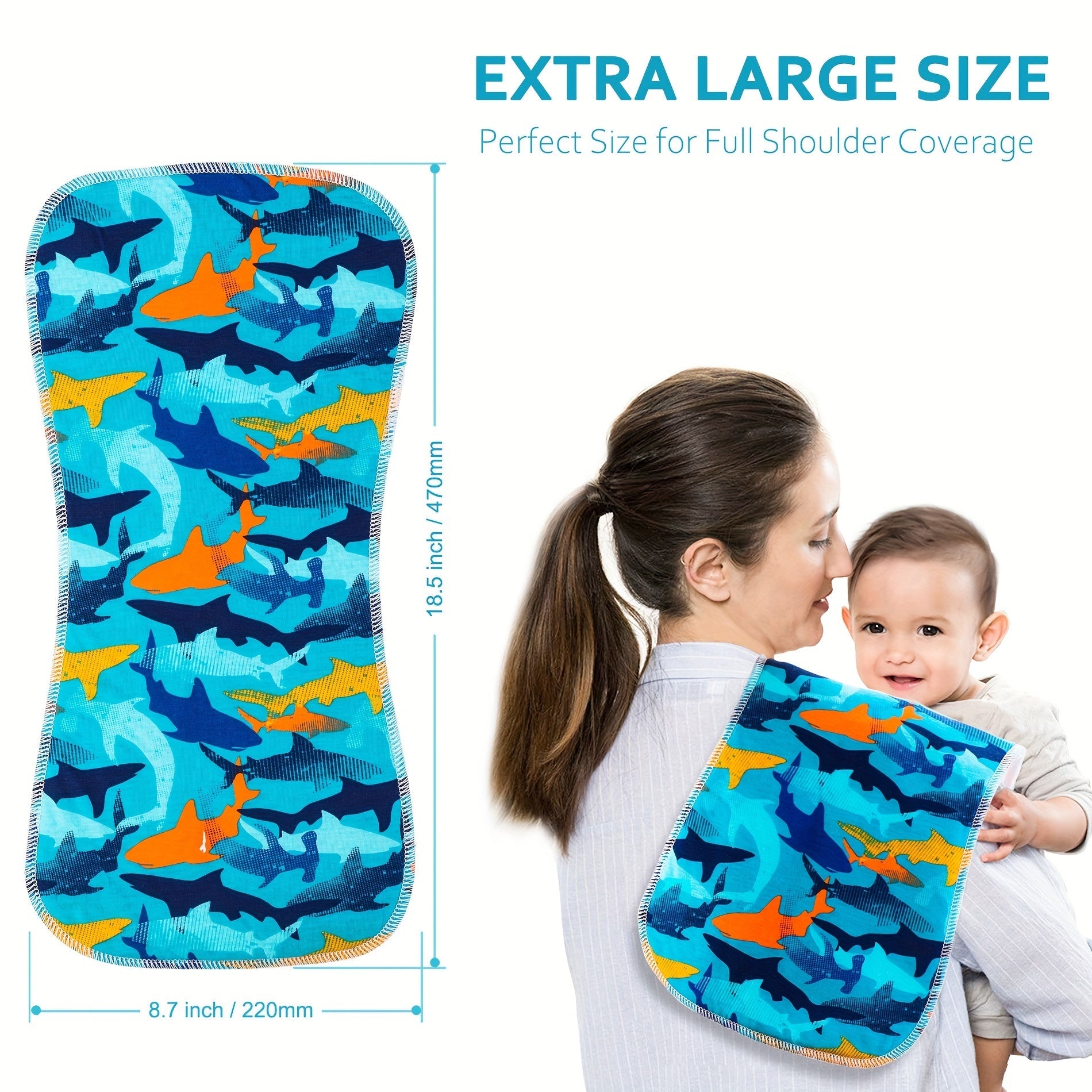 3 ta paxta burp matolari to'plami, bolalar uchun mo'ljallangan, qo'shimcha so'rish va yumshoqlik uchun. Yangi tug'ilgan chaqaloqlar uchun mukammal, bu katta o'lchamdagi matolar qusishni ushlab qolish va chaqaloqni toza saqlash uchun juda yaxshi.