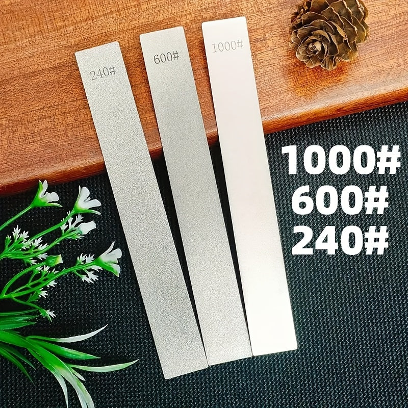 3 ta olmos pichoqni o'tkirlashtiruvchi to'plami - 1000# va 600# qattiqlikdagi professional to'rtburchakli o'tkirlashtiruvchi toshlar bilan birga. Oshxona pichoqlari uchun qo'lda pichoqni maydalash vositalari, elektr energiyasi talab qilinmaydi.