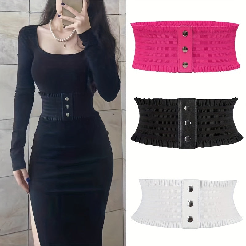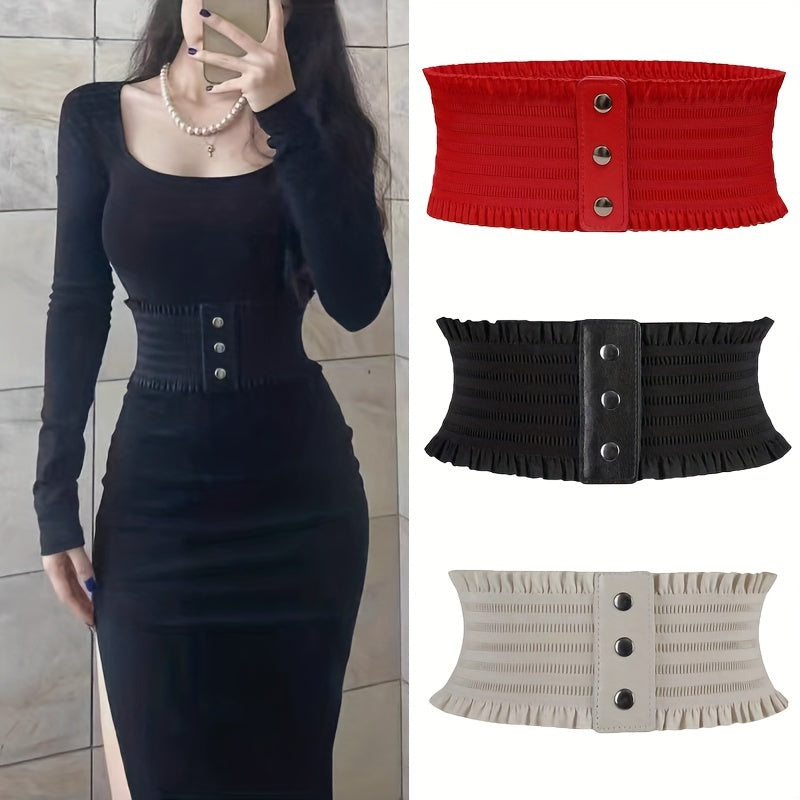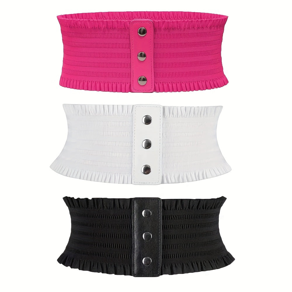 Vintage kiyinganlar va palto uchun 3 ta Ruffled keng kamarlar to'plami, elastik belbog' bilan