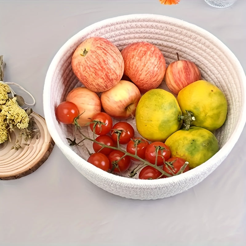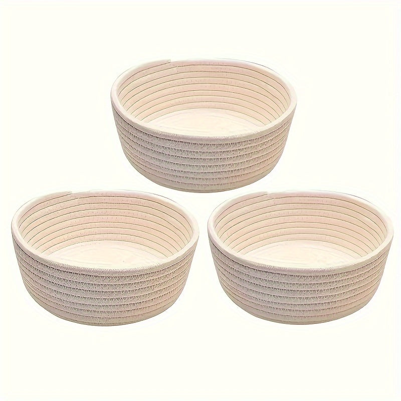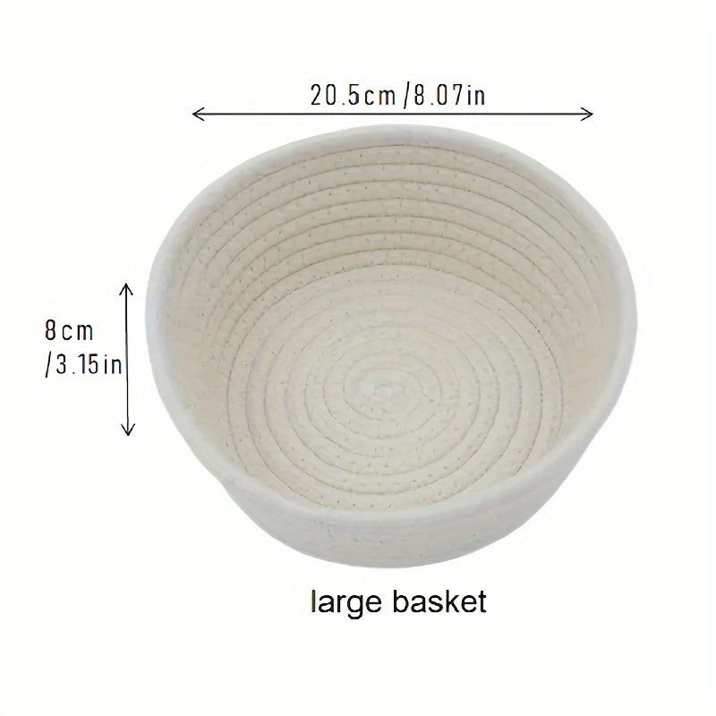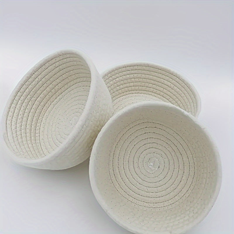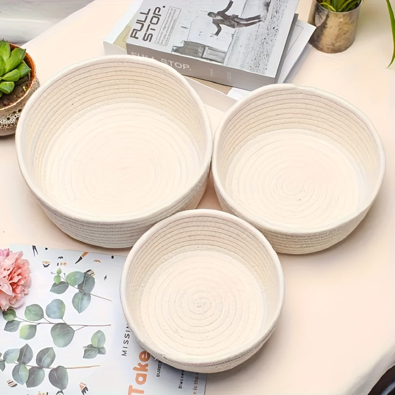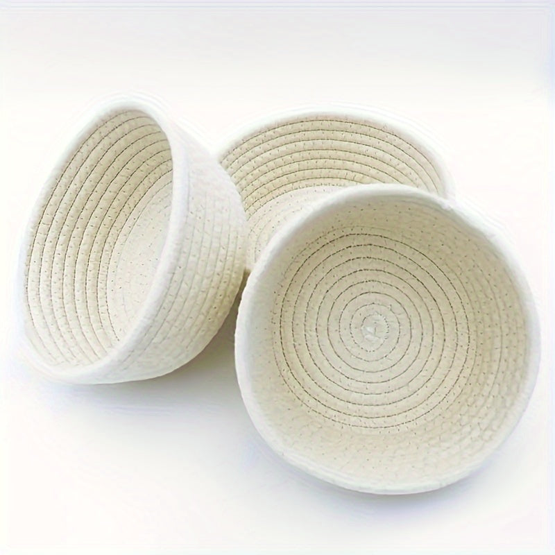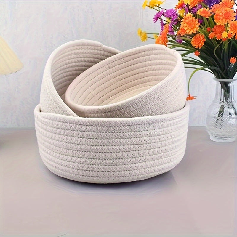 3 ta qo'l bilan to'qilgan paxta ipidan tayyorlangan saqlash savatlari to'plami, kosmetikalar, kalitlar va boshqa narsalarni zamonaviy uy tartibga solish uchun. Qahva stoli va ish stoli bezatish uchun ideal.