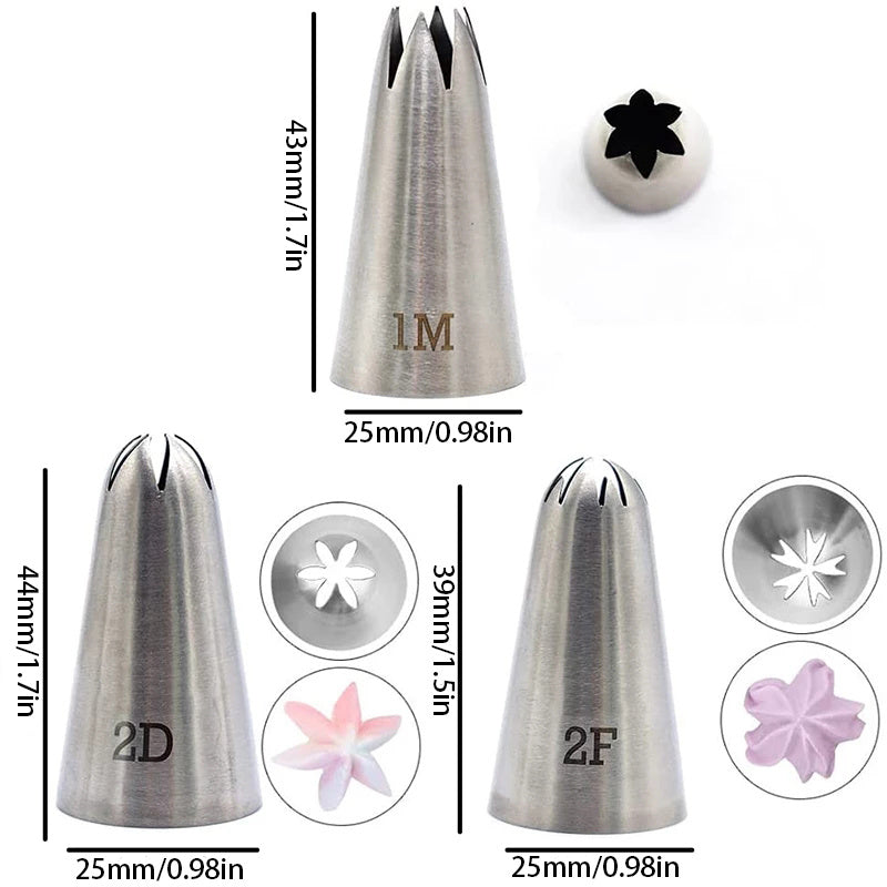 Tort va kek uchun 3 ta katta bezash uchun shpritslar to'plami