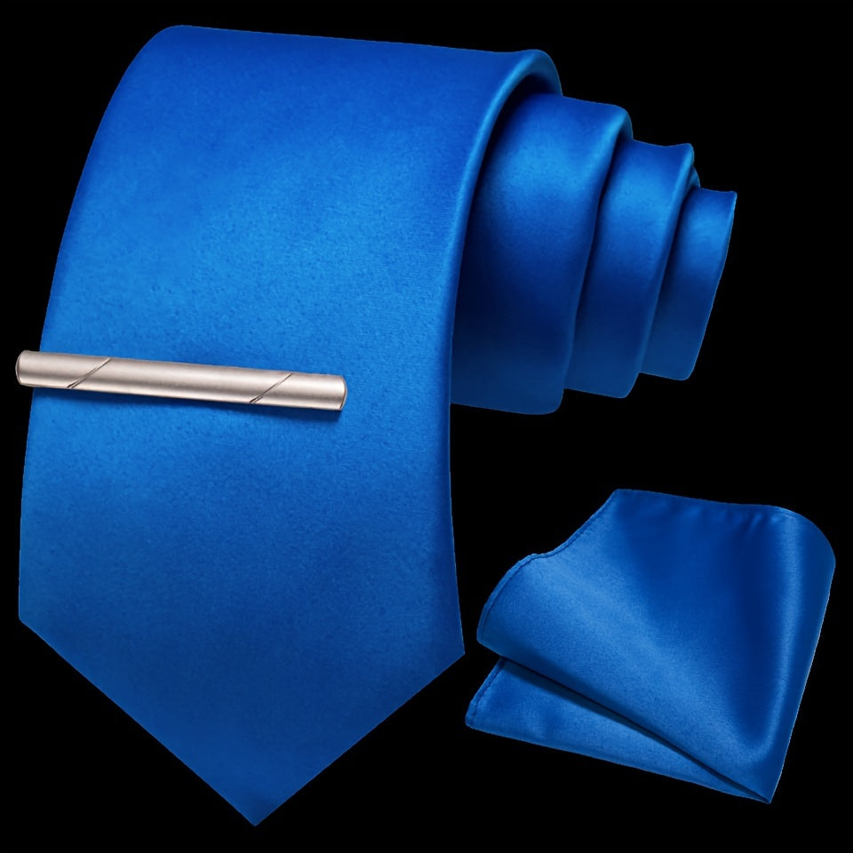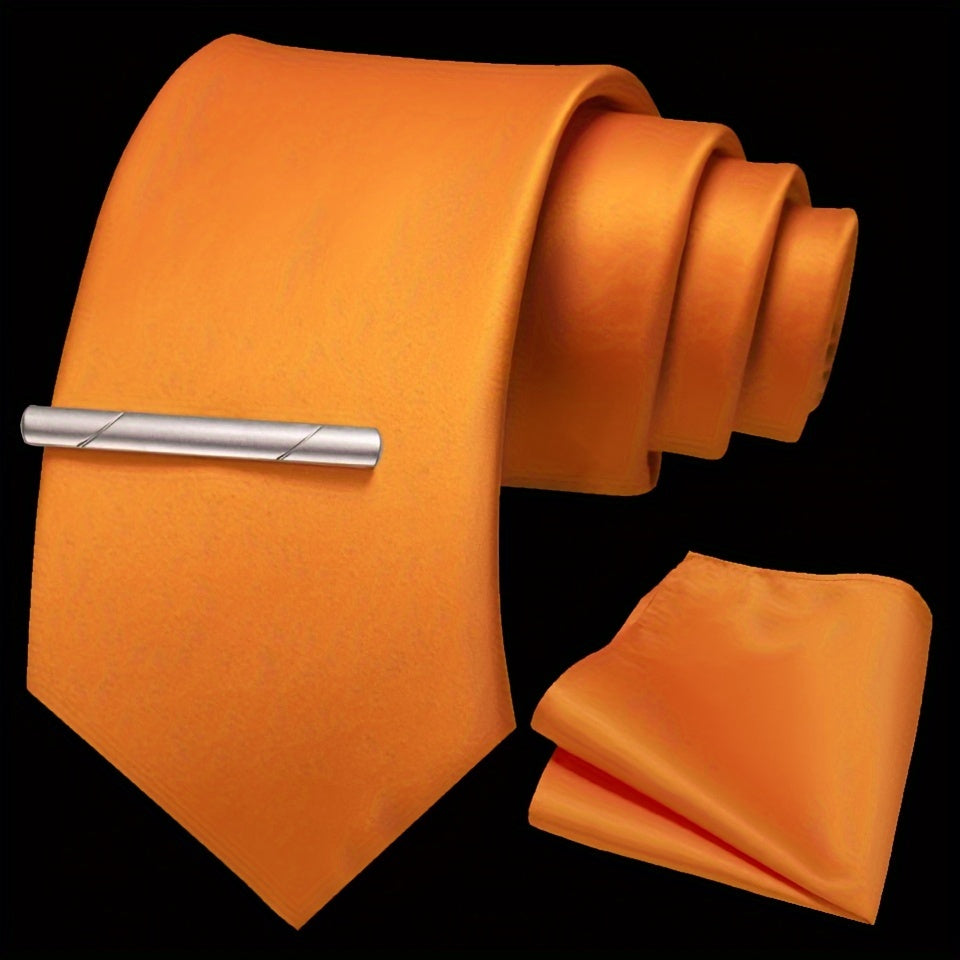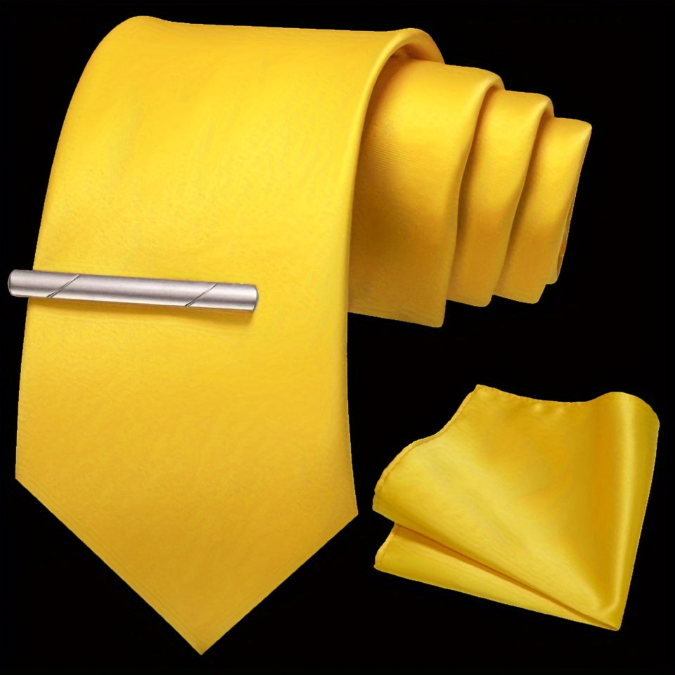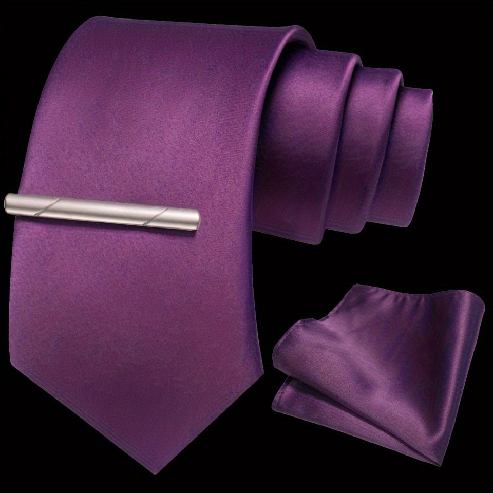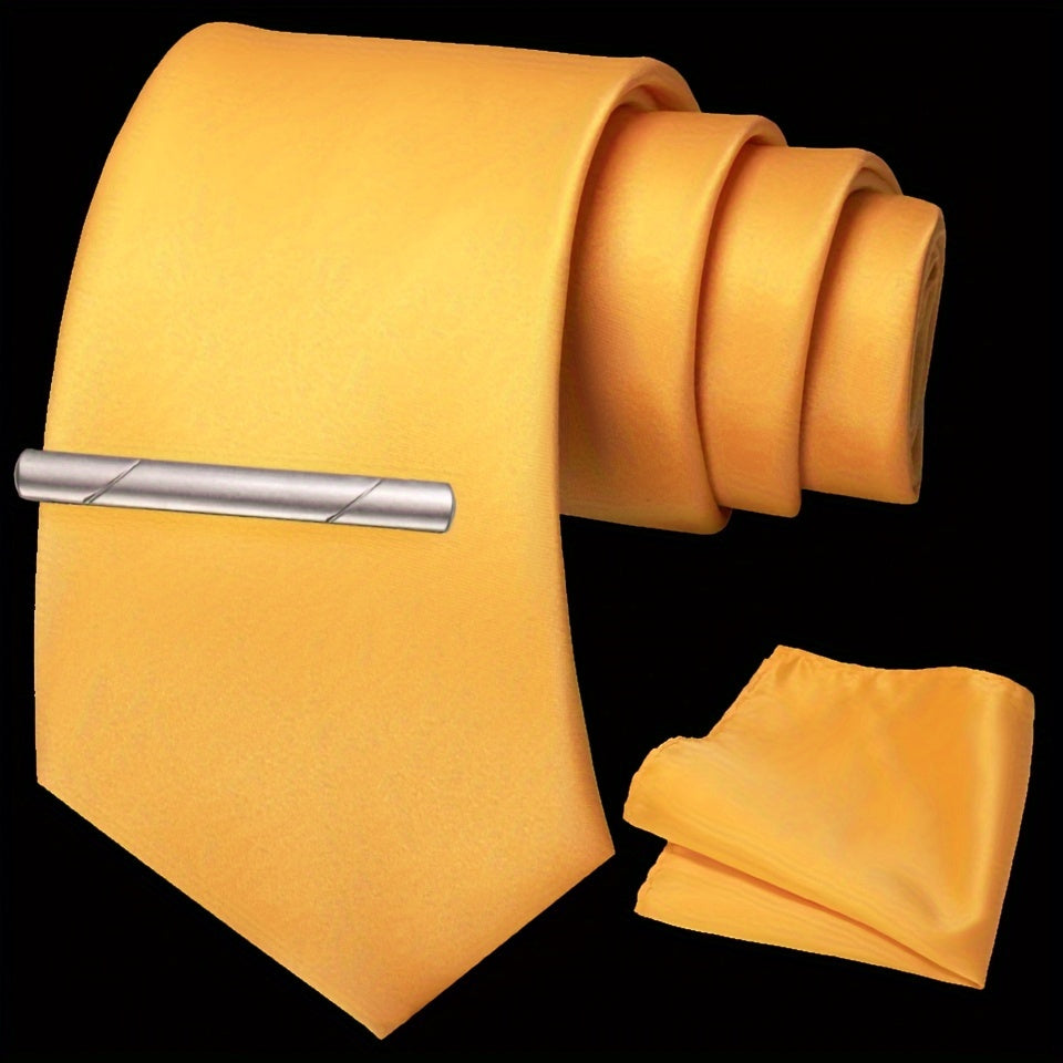 Erkaklar uchun bir rangli ipak aksessuarlar to'plami, galstuk, cho'ntak sharf, sochiq, galstuk klipi, rasmiy kiyimlar va sovg'alar uchun