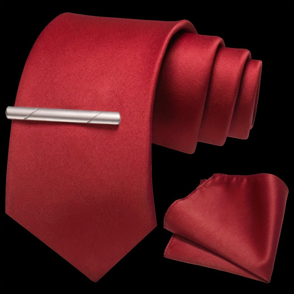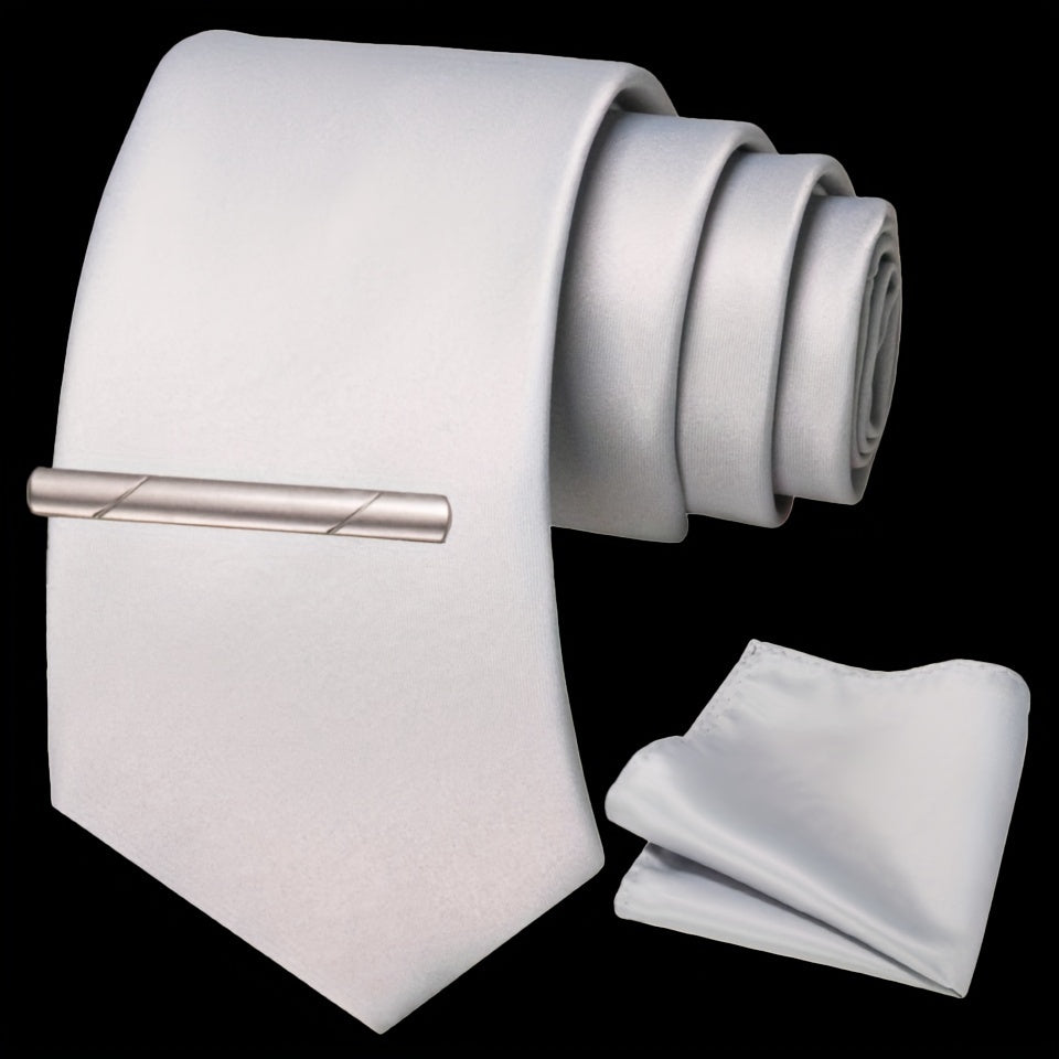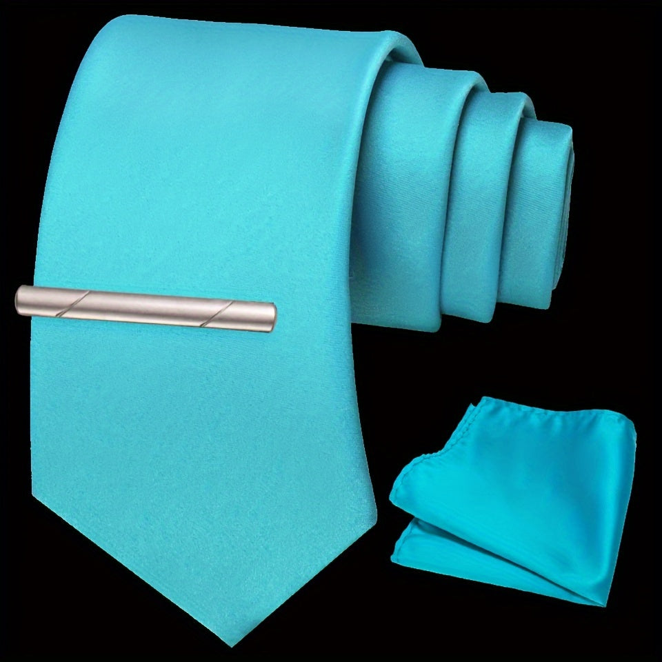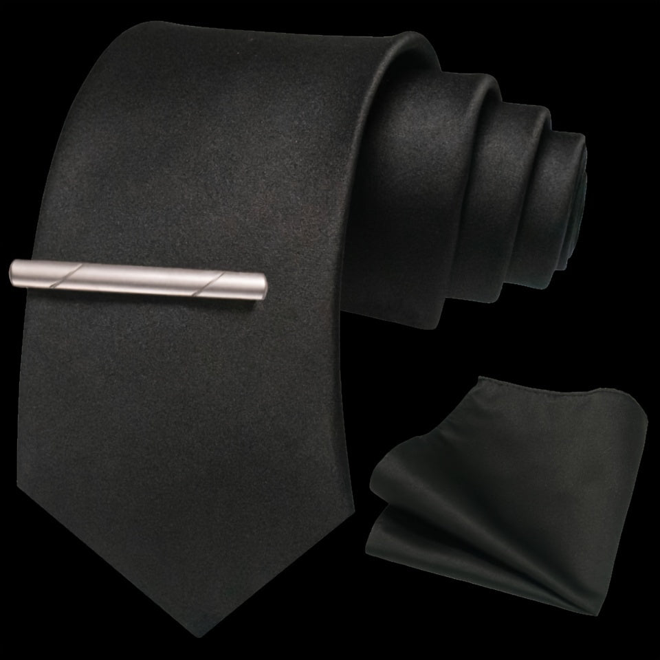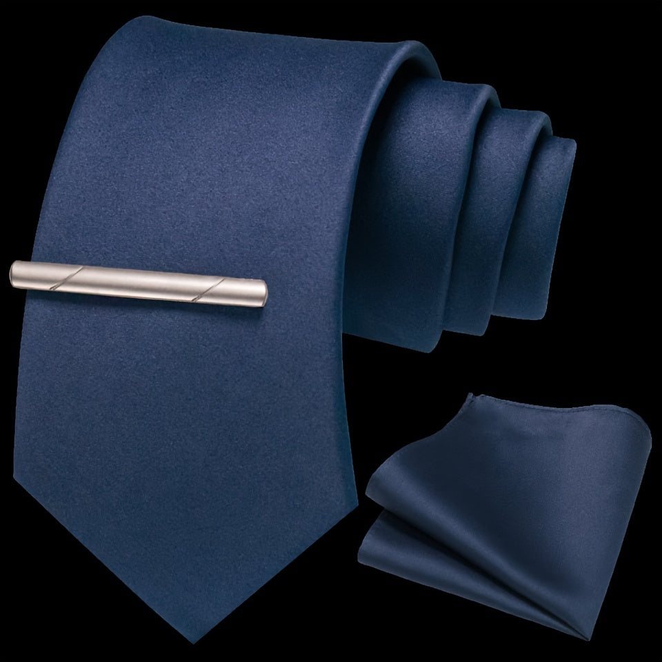 Erkaklar uchun bir rangli ipak aksessuarlar to'plami, galstuk, cho'ntak sharf, sochiq, galstuk klipi, rasmiy kiyimlar va sovg'alar uchun