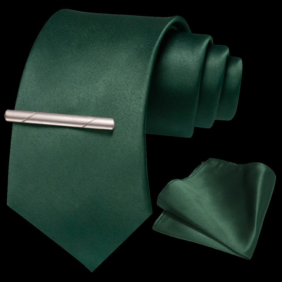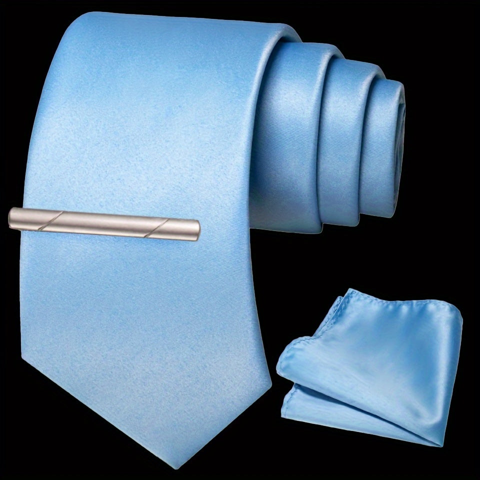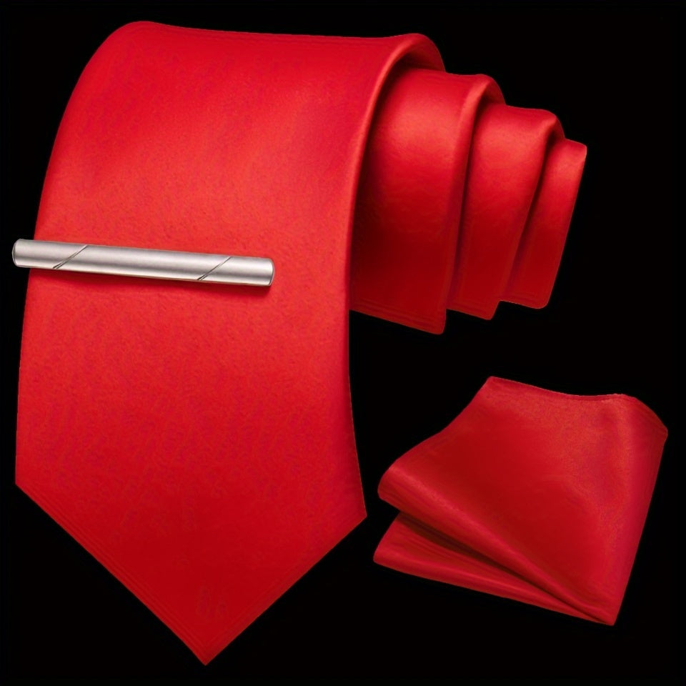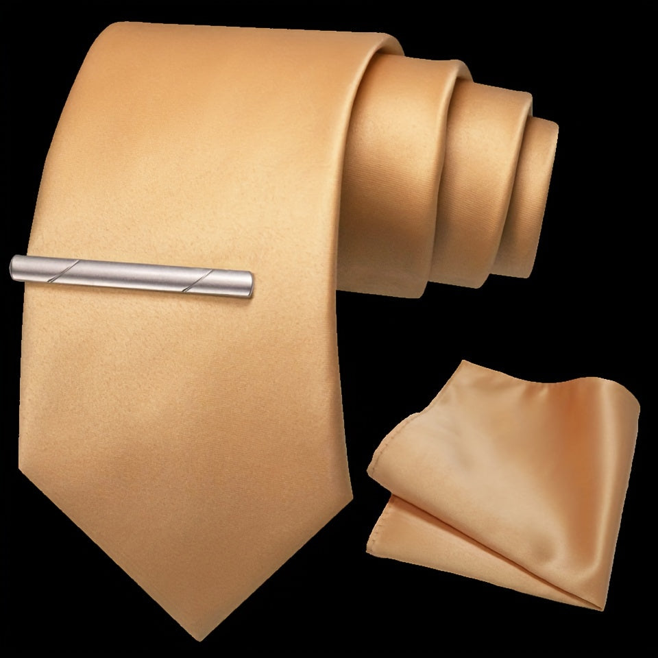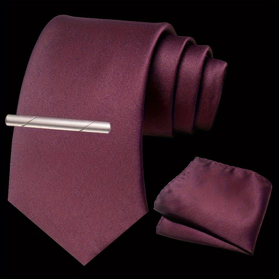 Erkaklar uchun bir rangli ipak aksessuarlar to'plami, galstuk, cho'ntak sharf, sochiq, galstuk klipi, rasmiy kiyimlar va sovg'alar uchun