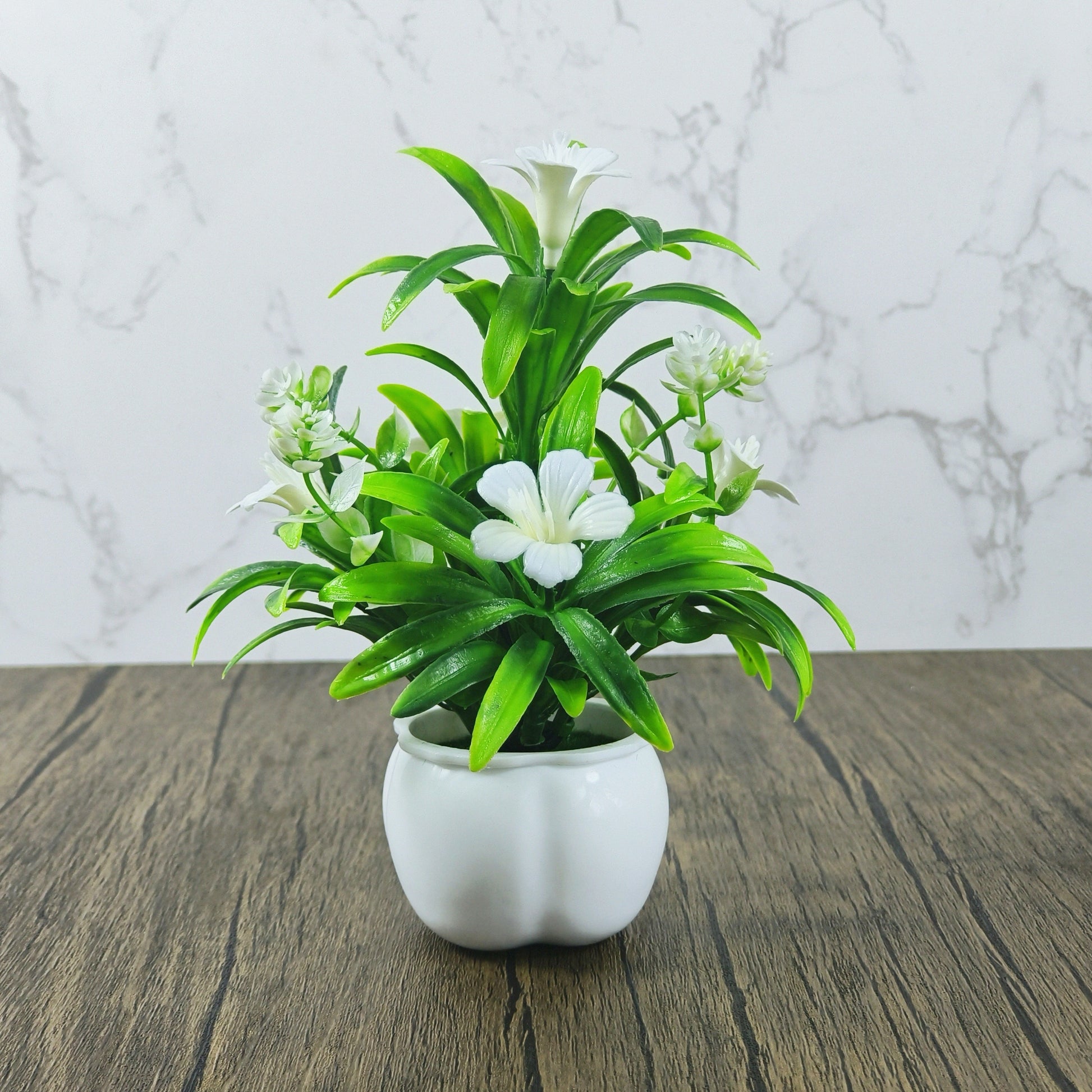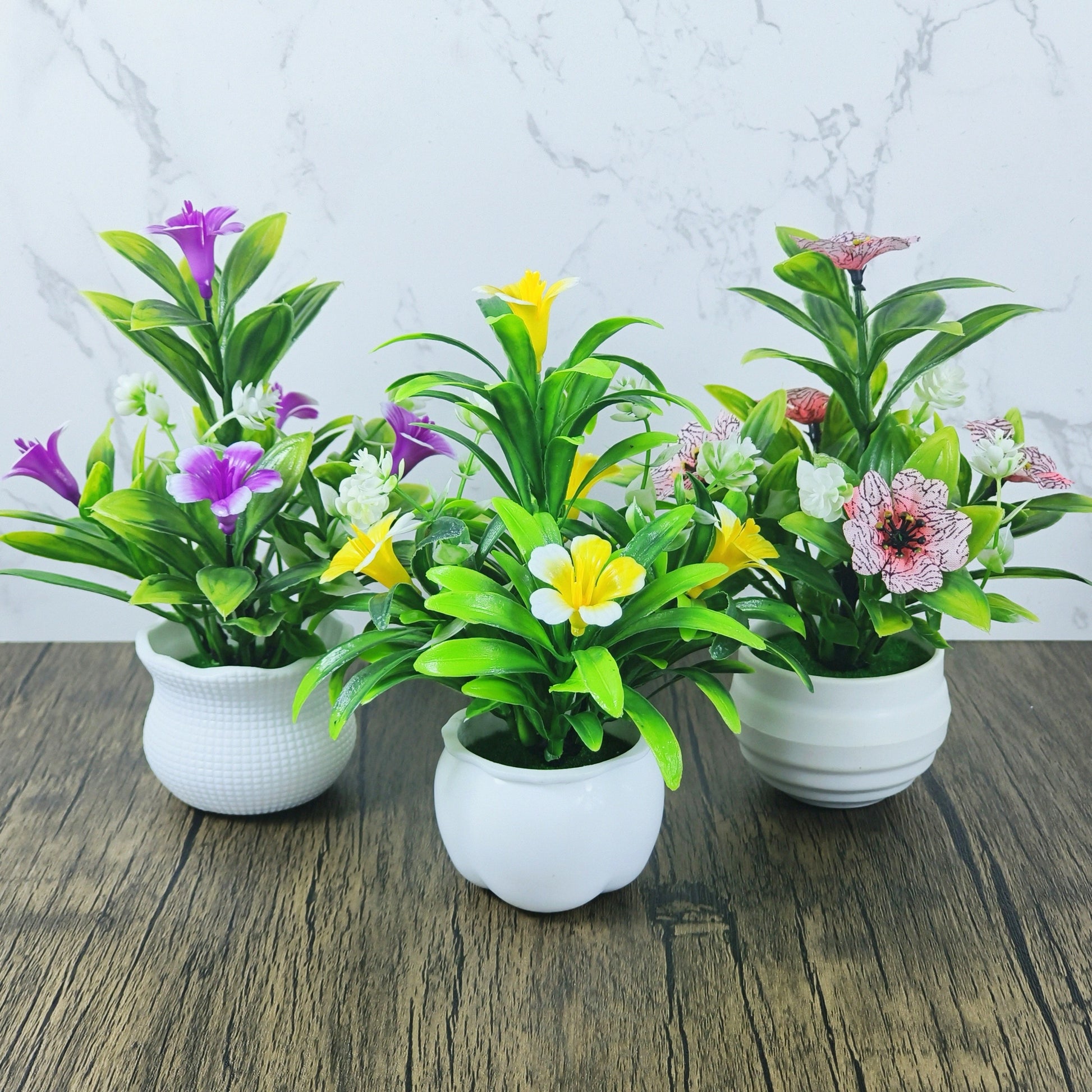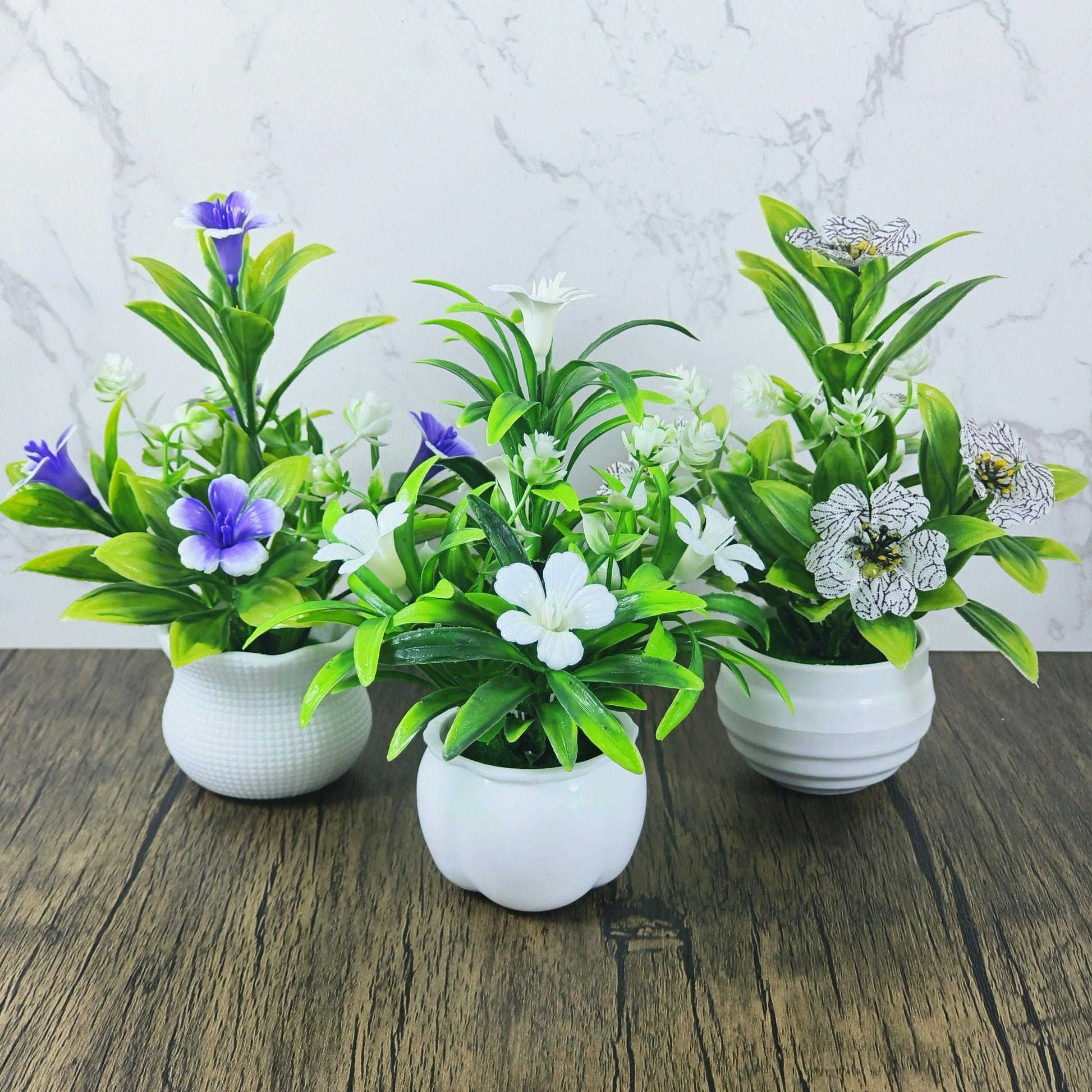3 ta mini sun'iy qozon o'simliklar to'plami, uy bezatish uchun oq qozonlar bilan. Turli tadbirlar uchun yashash xonasi, ofis stoli yoki bayram stol bezatish uchun mukammal.
