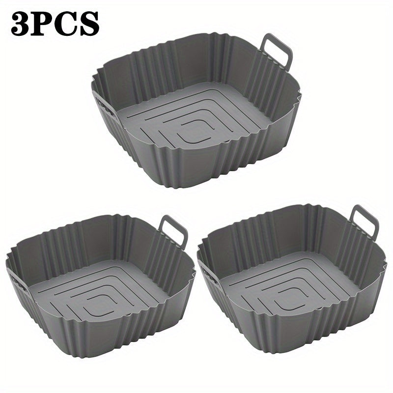 3 ta Non-Stick Silikon Havo Fryer Savatlari, Pechda foydalanish uchun xavfsiz, Turli xil pishirish uchun oziq-ovqat darajasidagi aksessuarlar
