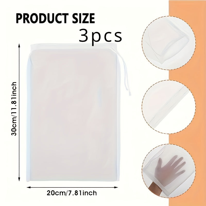 3 ta qayta ishlatiladigan naylon to'rli filtr sumkasi - oson filtratsiya uchun qulay oshxona asboblari