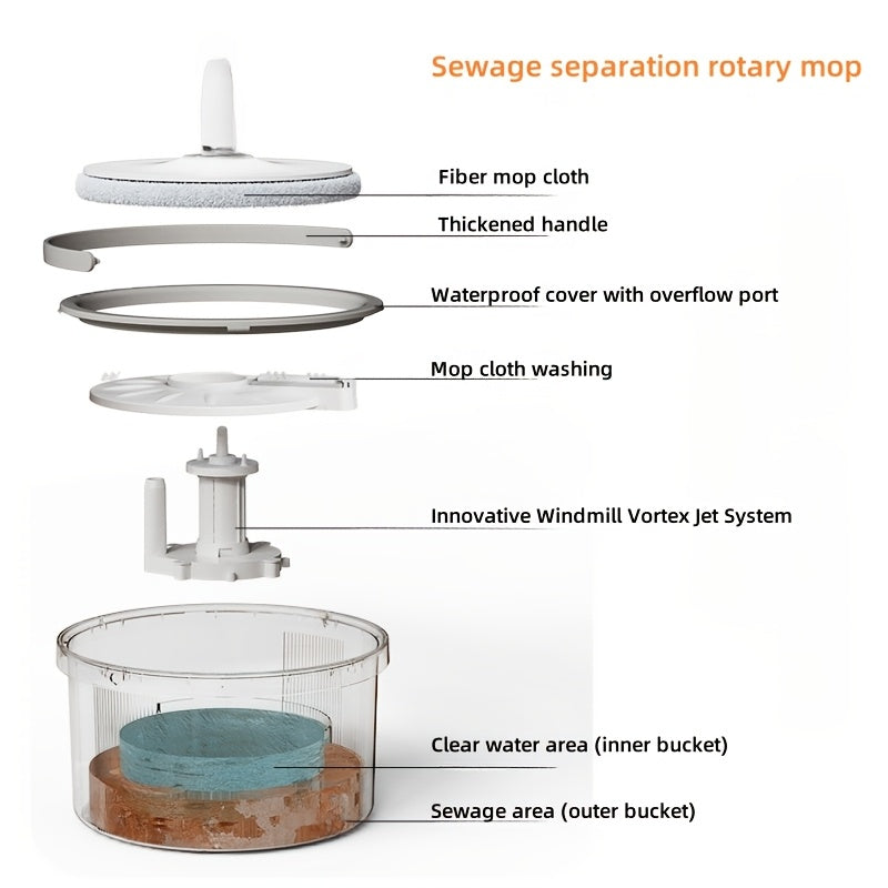 3 ta Spin Mop to'plami 3 ta Mikrofiber Pad bilan - Noxushlangan po'latdan yasalgan tutqich, uzoq muddatli ABS material, Oshxona, Hammom va Yashash xonasi tozalash uchun mukammal