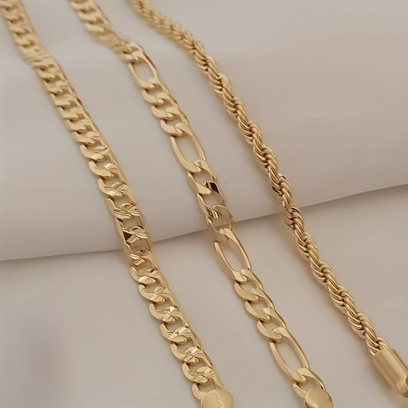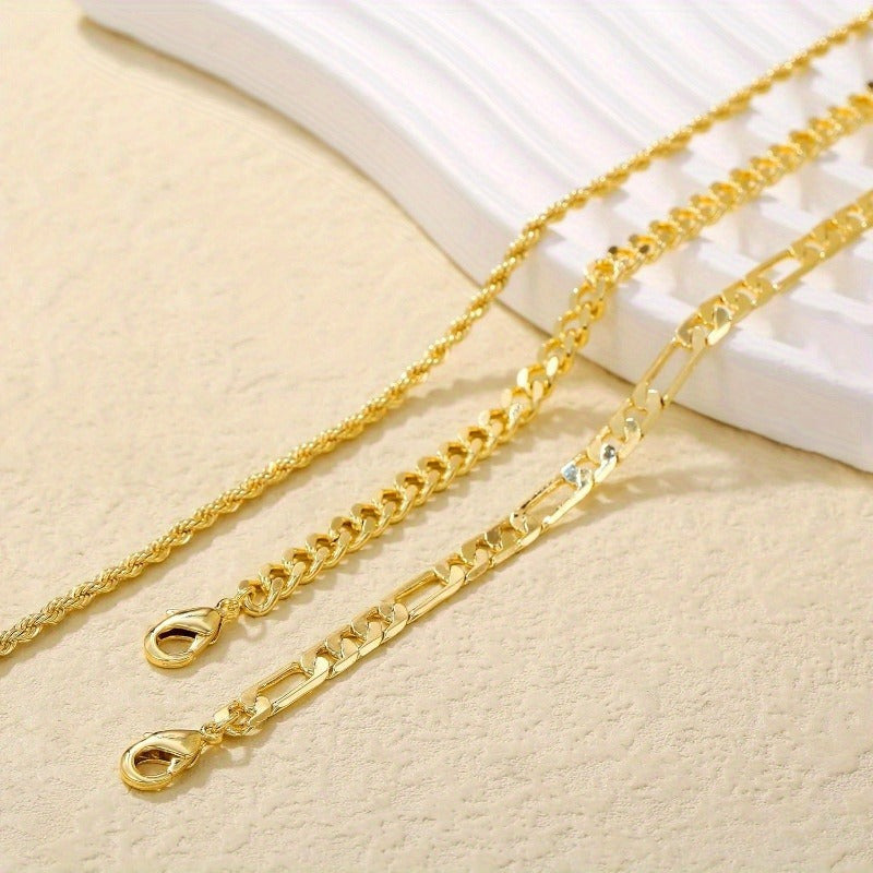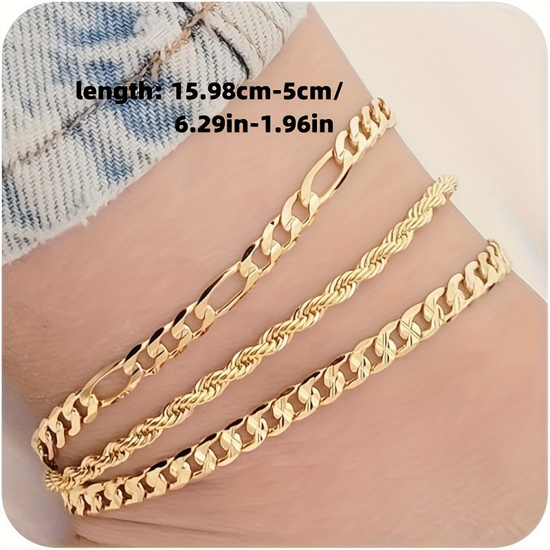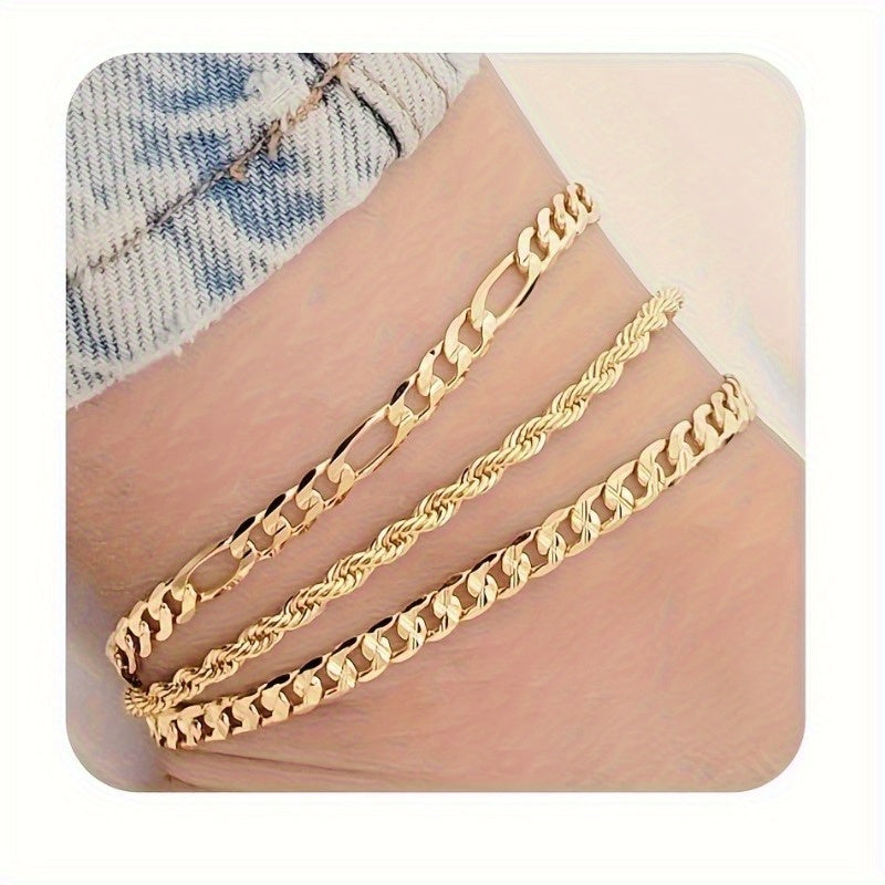 3 ta ayollar uchun zanglamaydigan po'latdan yasalgan ankletlar to'plami, 14K oltin qoplamali, suv o'tkazmaydigan Kuban Figaro simli zanjirlar
