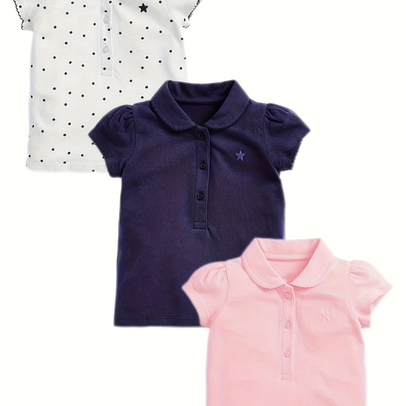 3 ta kichik qizlar uchun yulduzli tikuv va nuqta grafikasi bilan polo ko'ylaklar to'plami