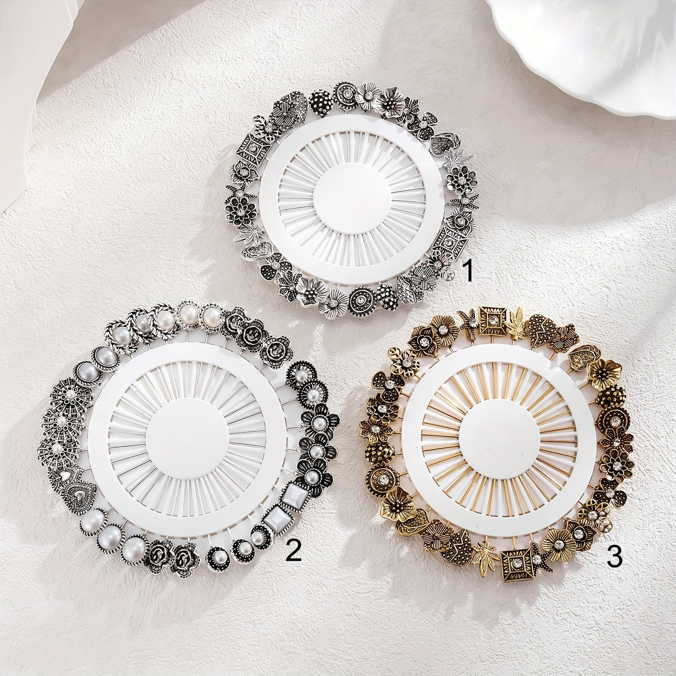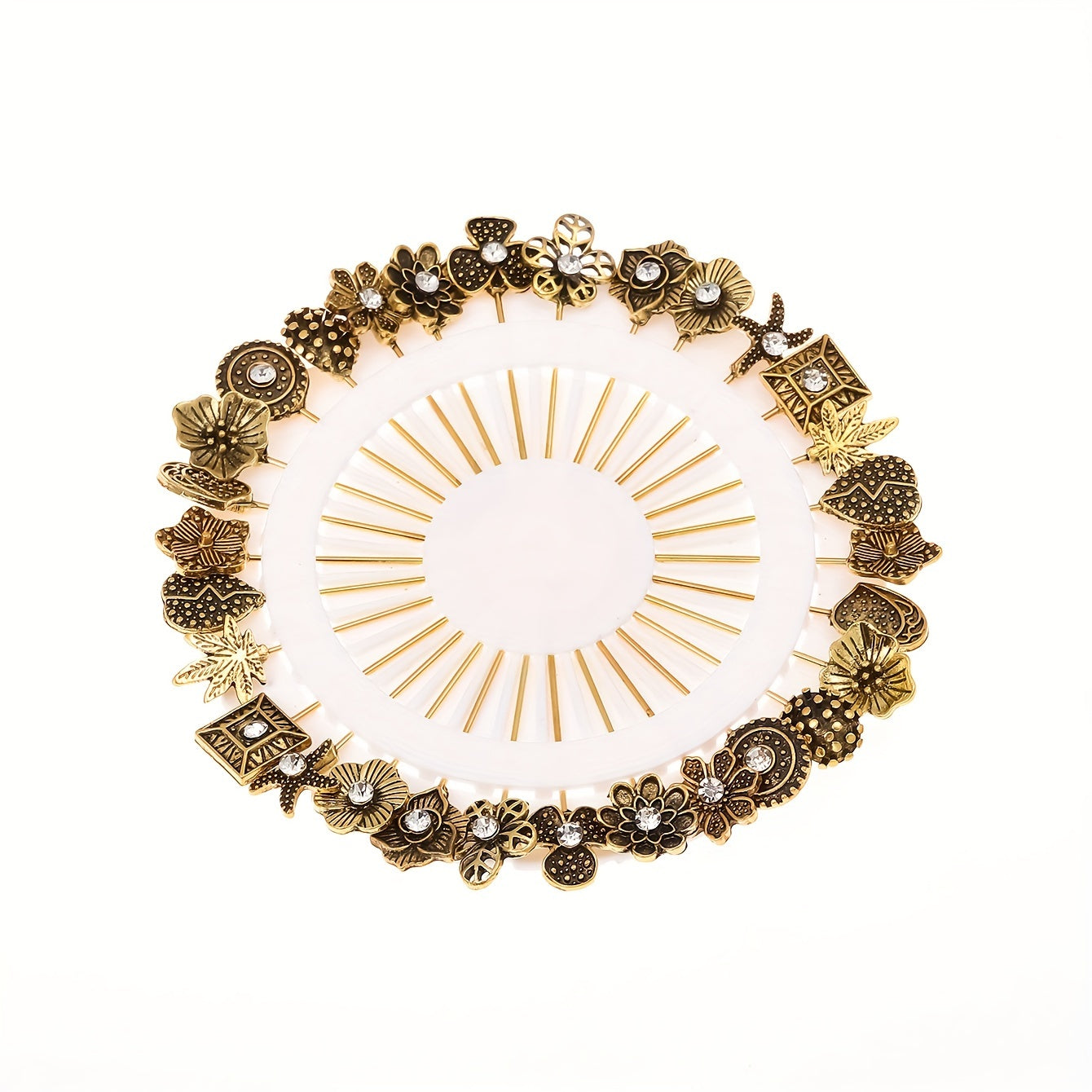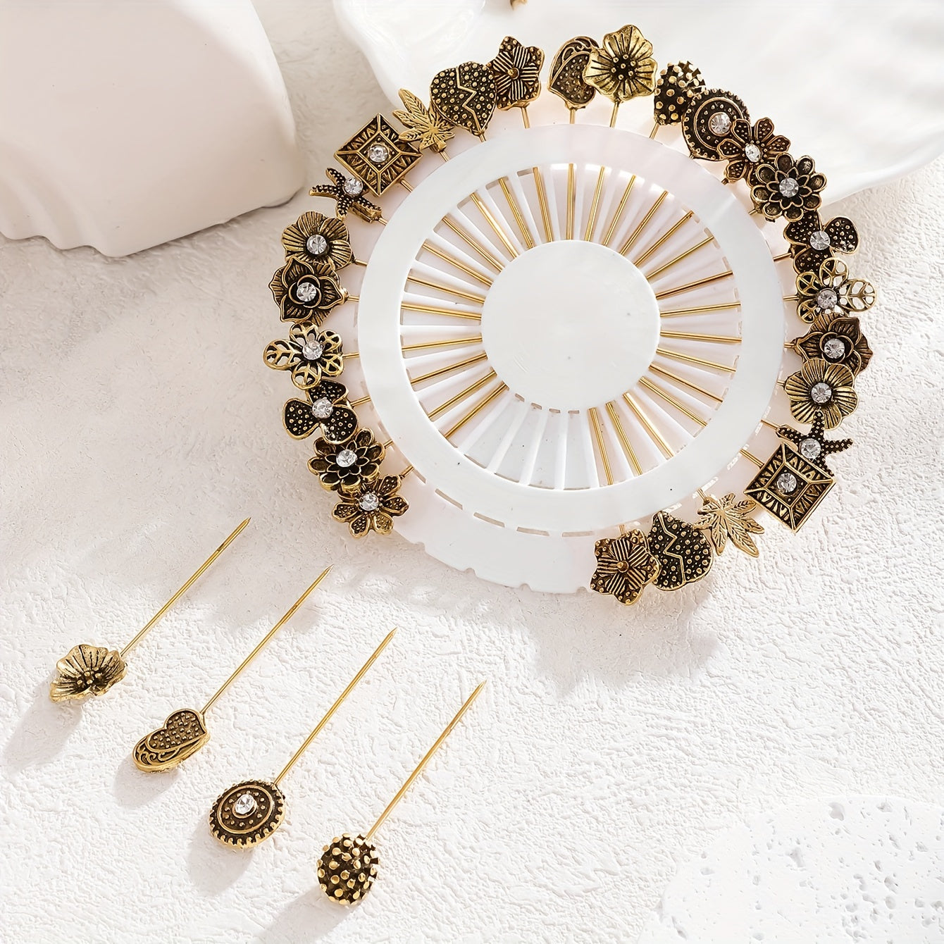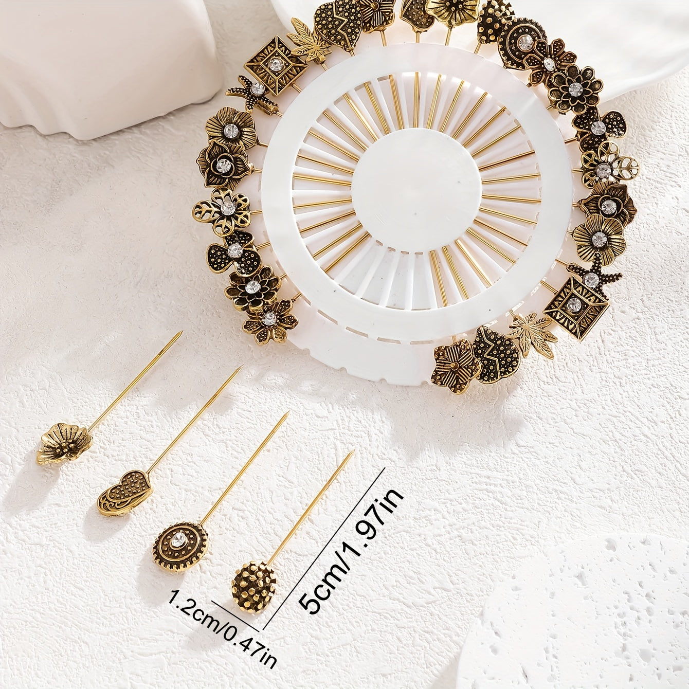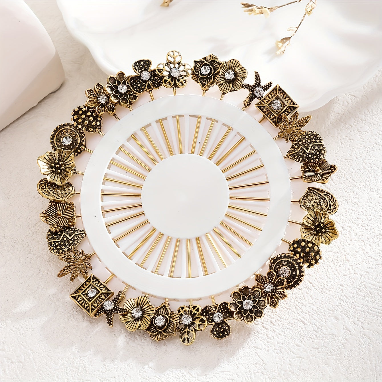 30 ta vintage uslubidagi gullar va yurak broshkalari to'plami, rux qotishmasidan yasalgan rhinestone bilan bezatilgan sharf pinlari, ta'til va har kuni kiyish uchun mukammal, ideal arab moda zargarlik aksessuari