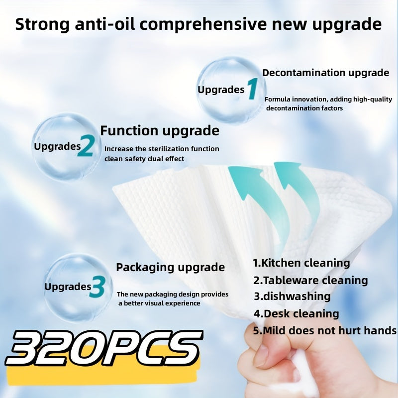 320 ta oshxona tozalash matolari to'plami - og'ir yog' va pechka dog'larini yumshoq va samarali olib tashlash uchun toksik bo'lmagan bir martalik matolar