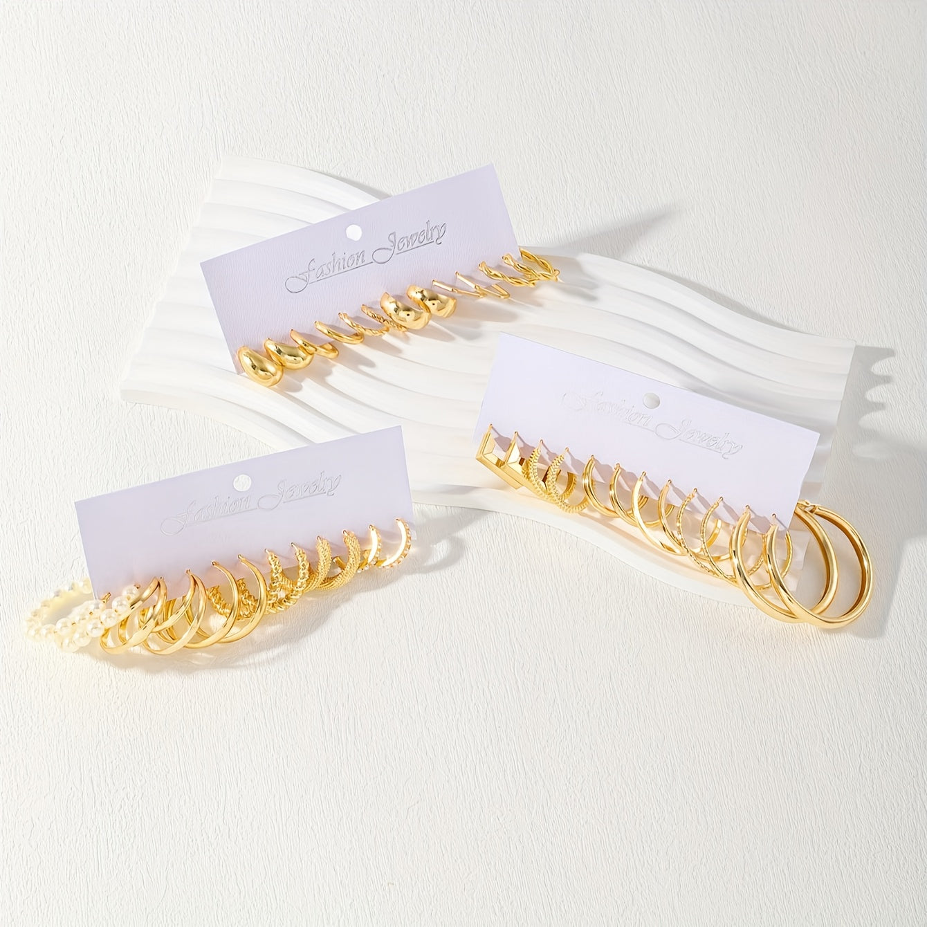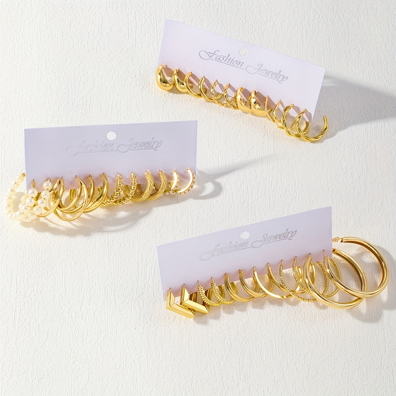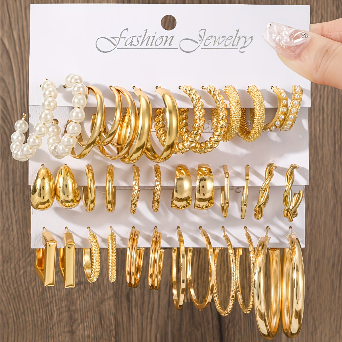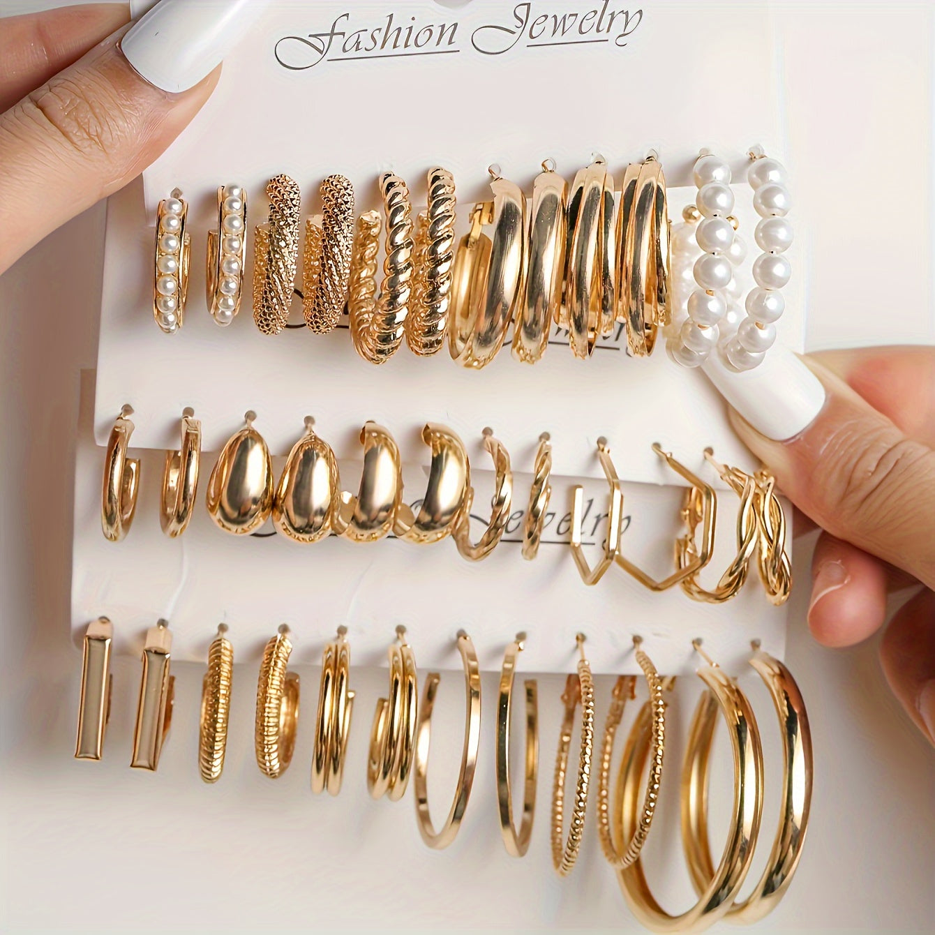 36 ta moda qotishma uzuk va ayollar uchun sirg'alar to'plami, sun'iy marvaridlar bilan retro punk uslubida, har kuni kiyish uchun mukammal.