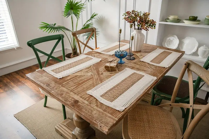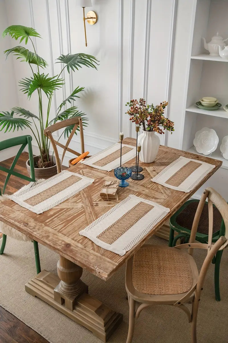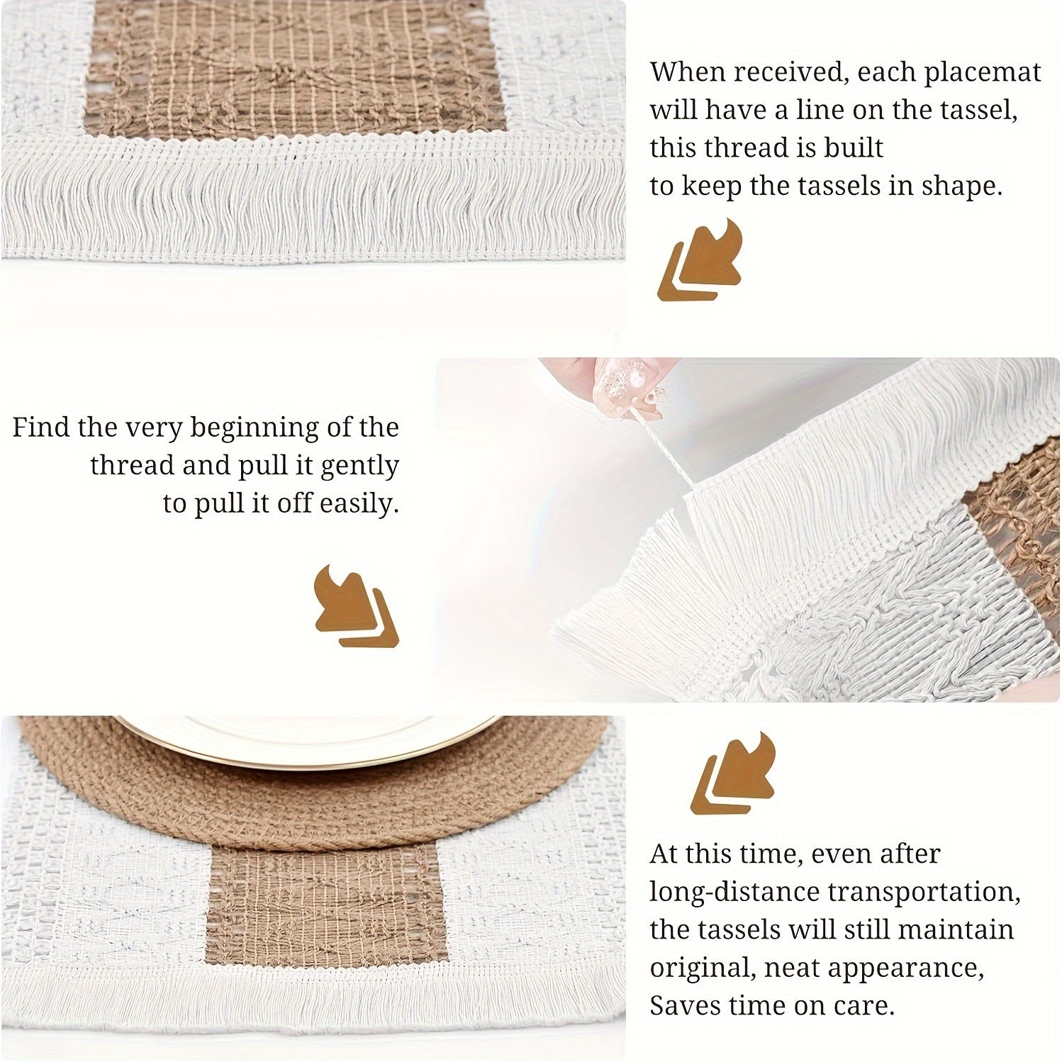 4-6 dona Boho uslubidagi stol osti to'plami yengil hashamat va Nordik uslubidagi stol bezaklari uchun. Ularni mehmonxona stoli osti yoki uy bezaklari uchun idish va plastinka osti sifatida ishlatish mumkin.