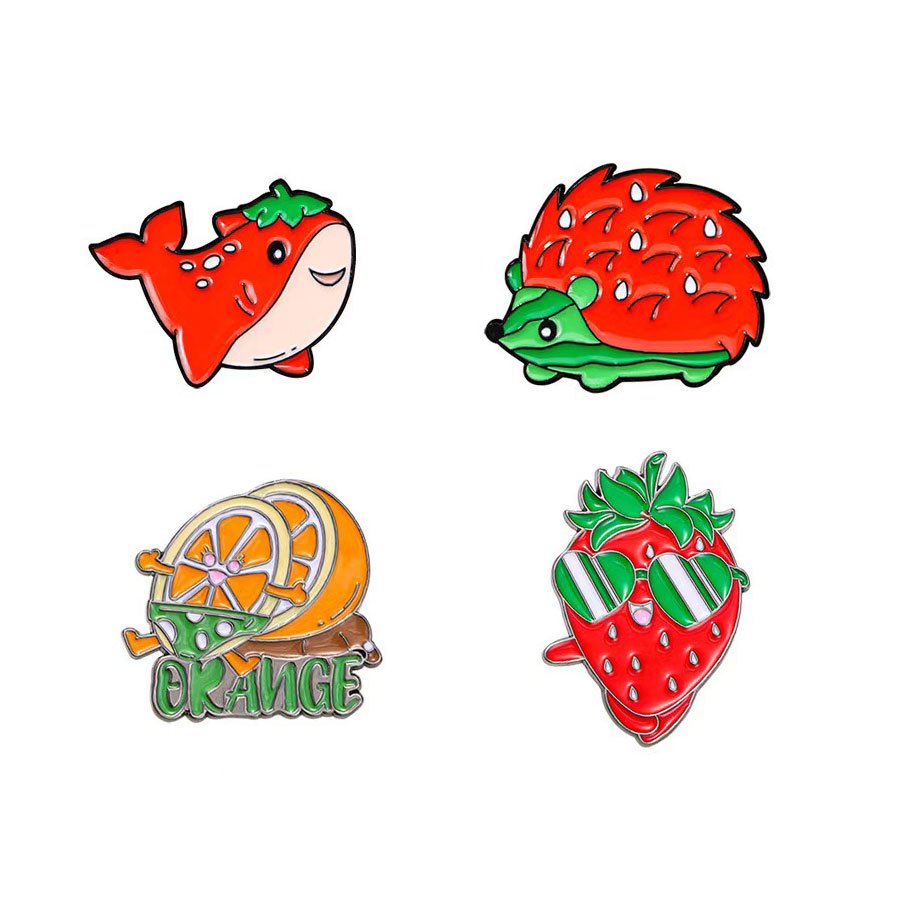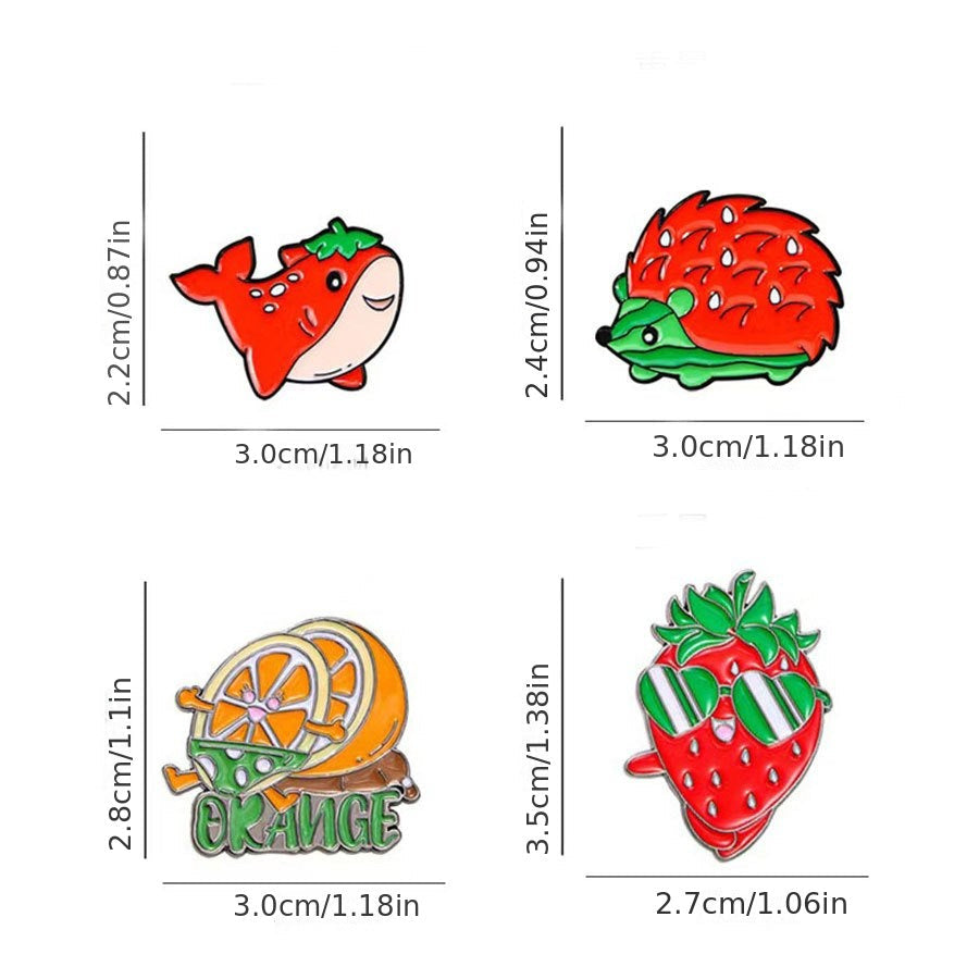 4 ta Qiziqarli Multfilm Meva va Hayvonlar Alloy Broshlar To'plami - Yorqin Qulupnay, Apelsin va Tovuq Pinlari - Har kuni foydalanish yoki sovg'a sifatida ideal - Har qanday mavsum uchun yoqimli aksessuar