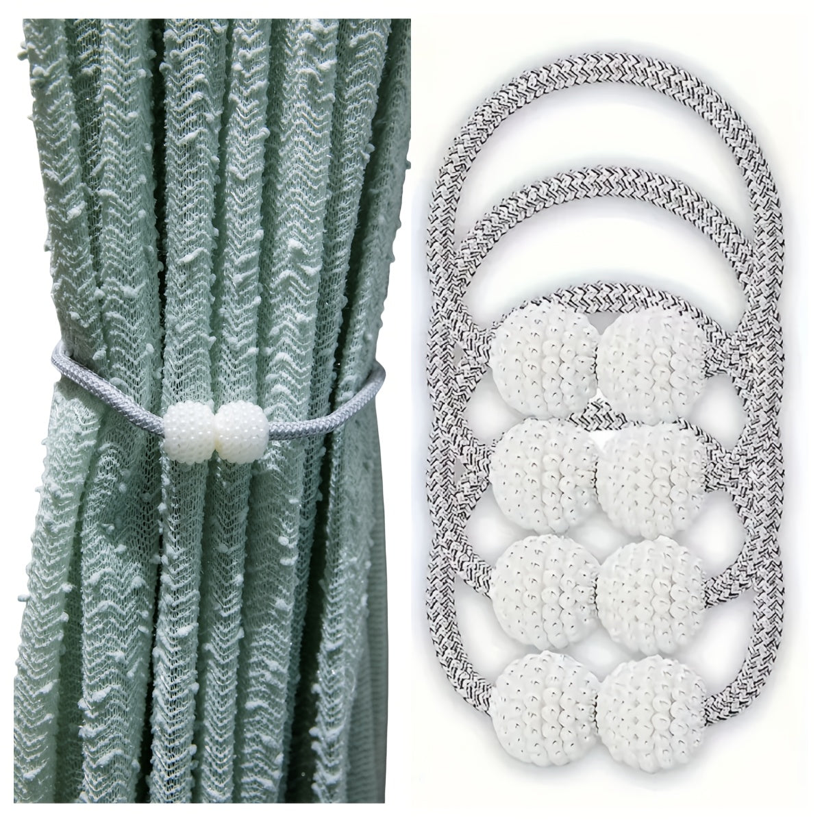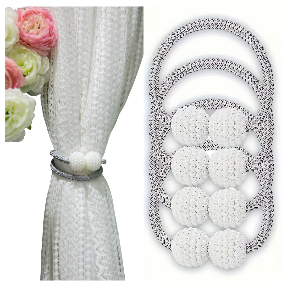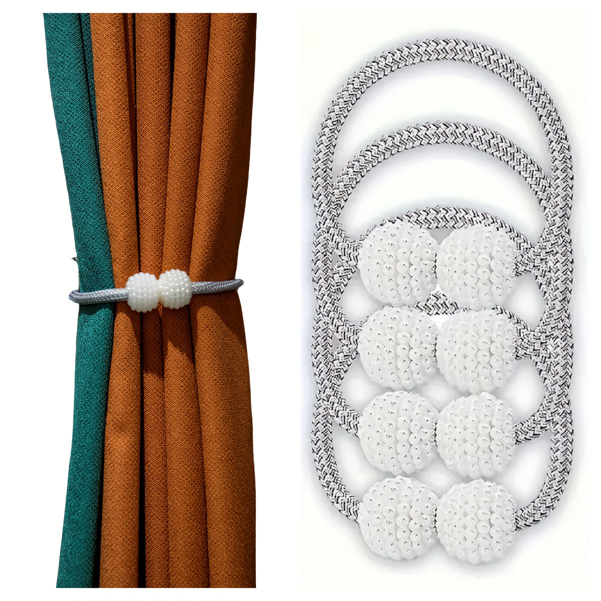 Yashash xonasi va yotoqxona uchun 4 ta kulrang polyester pardozlari bilan faux marjon detallari bilan to'plam