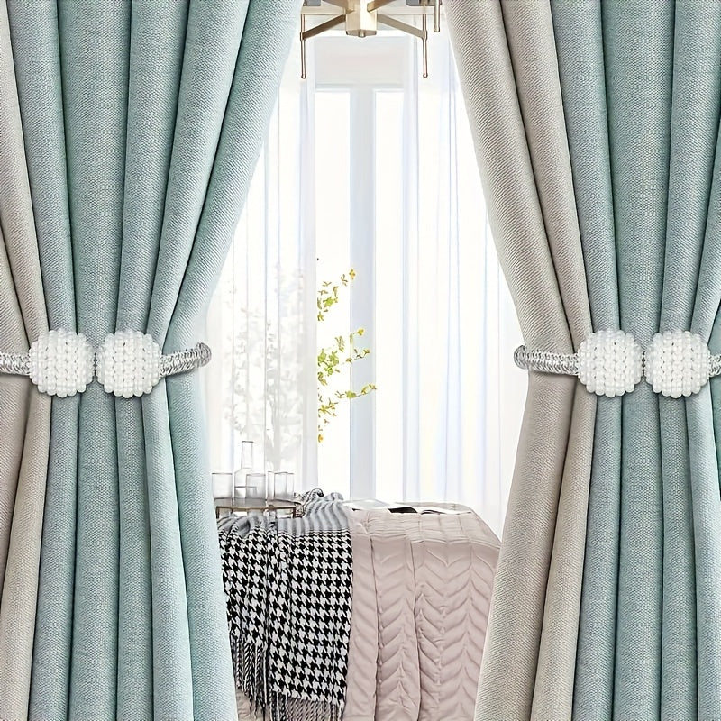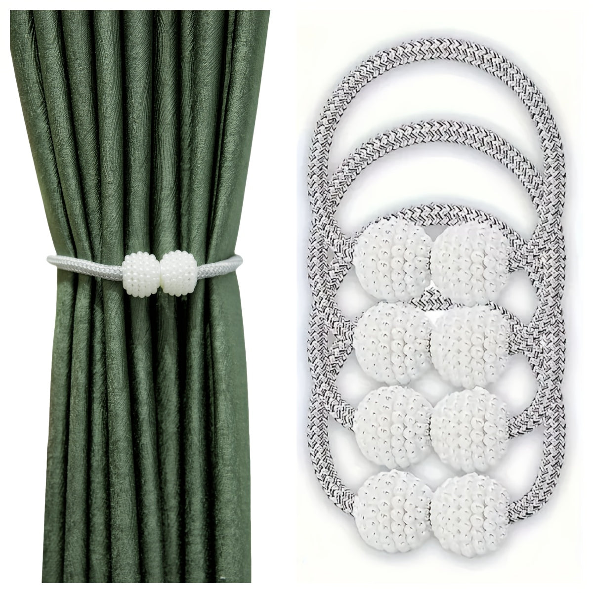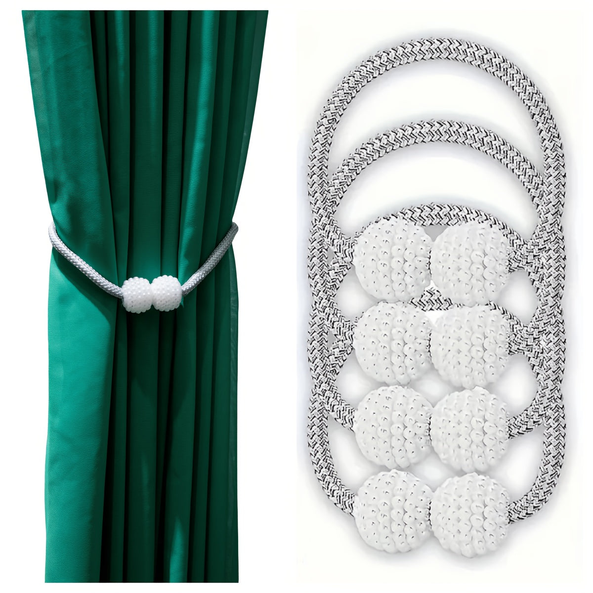 Yashash xonasi va yotoqxona uchun 4 ta kulrang polyester pardozlari bilan faux marjon detallari bilan to'plam