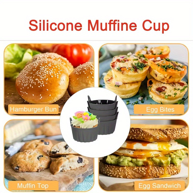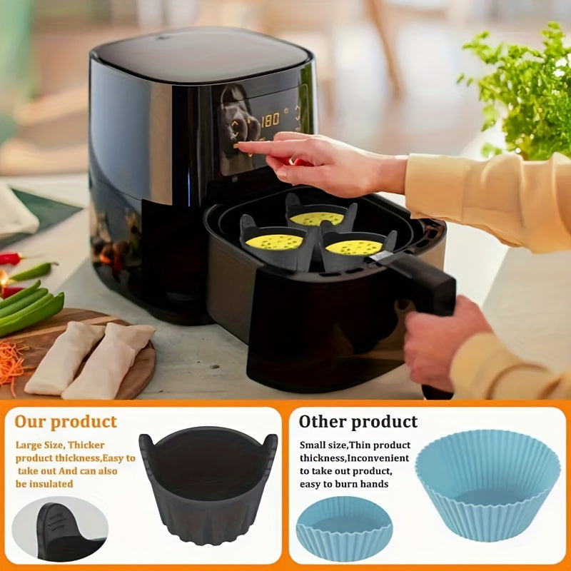 4 yoki 6 ta havo fritözida omlet qoliplari to'plami, qayta ishlatiladigan silikon mat bilan. Havo fritözü va tost uchun mini silikon omlet qolipi kiritilgan. BPA-siz, yopishqoq bo'lmagan oshxona aksessuarlari.
