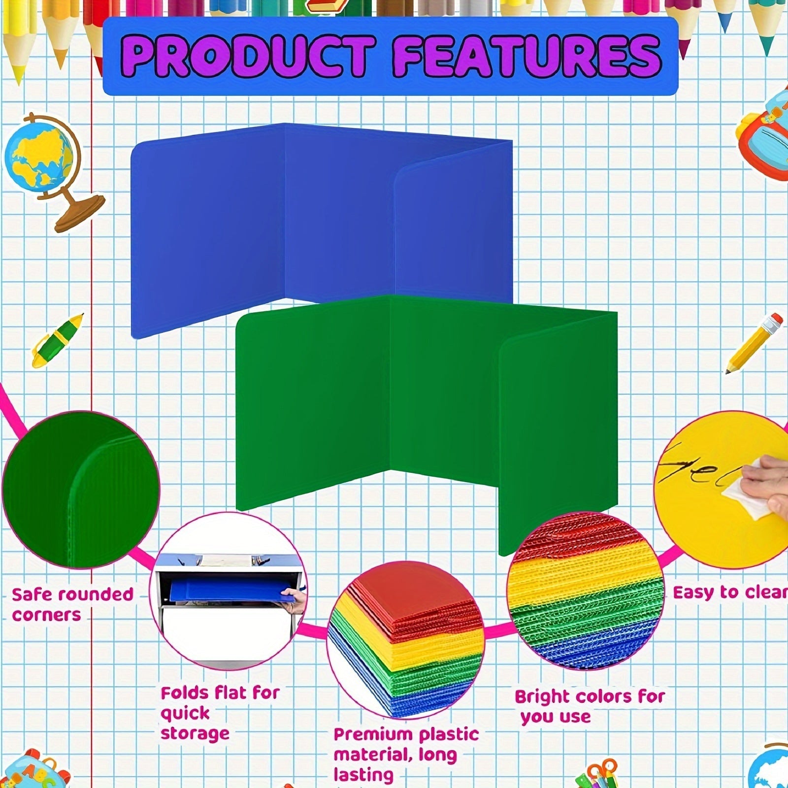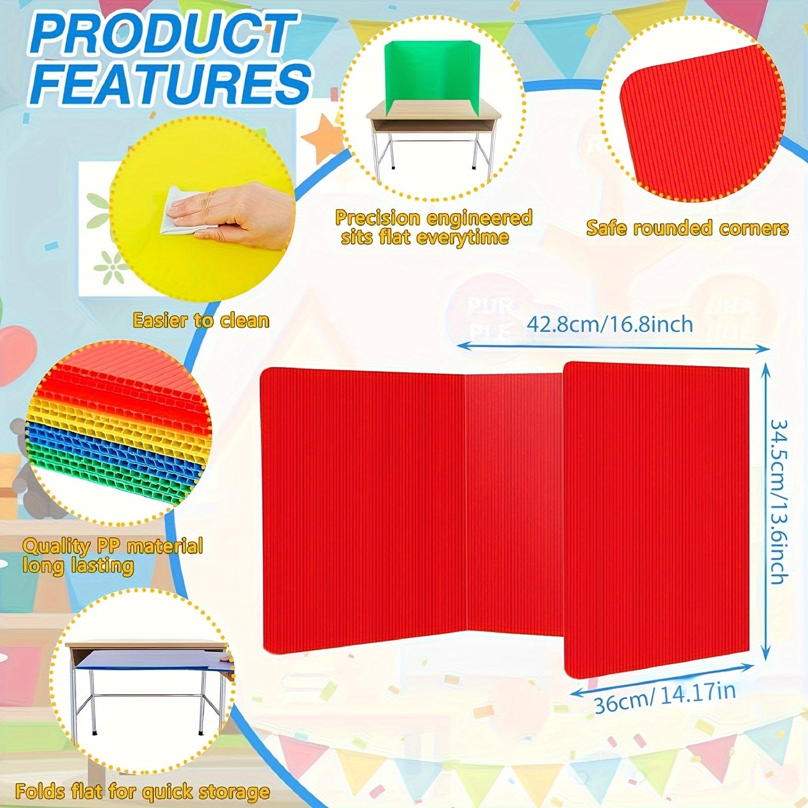 4 ta qizil plastik stol bo'linmalari to'plami - maktab va ish joylari uchun mustahkam, saqlash oson maxfiylik ekranlari