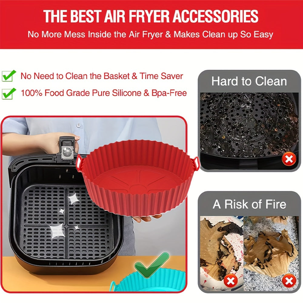 4 ta silikonli havo frayer uchun linzalar to'plami, 3-5 Qt savatlari uchun, qayta ishlatiladigan pishirish panasi aksessuarlari