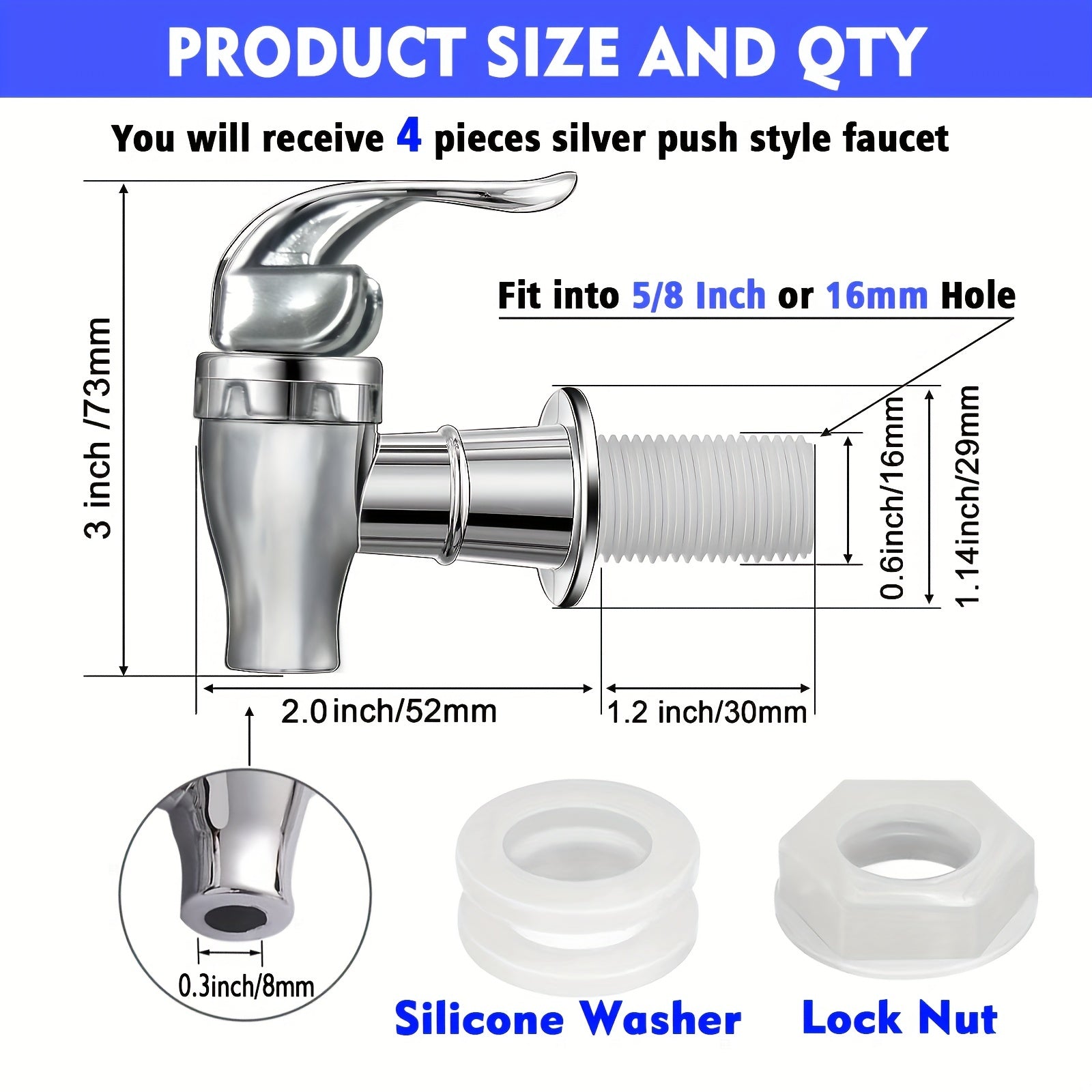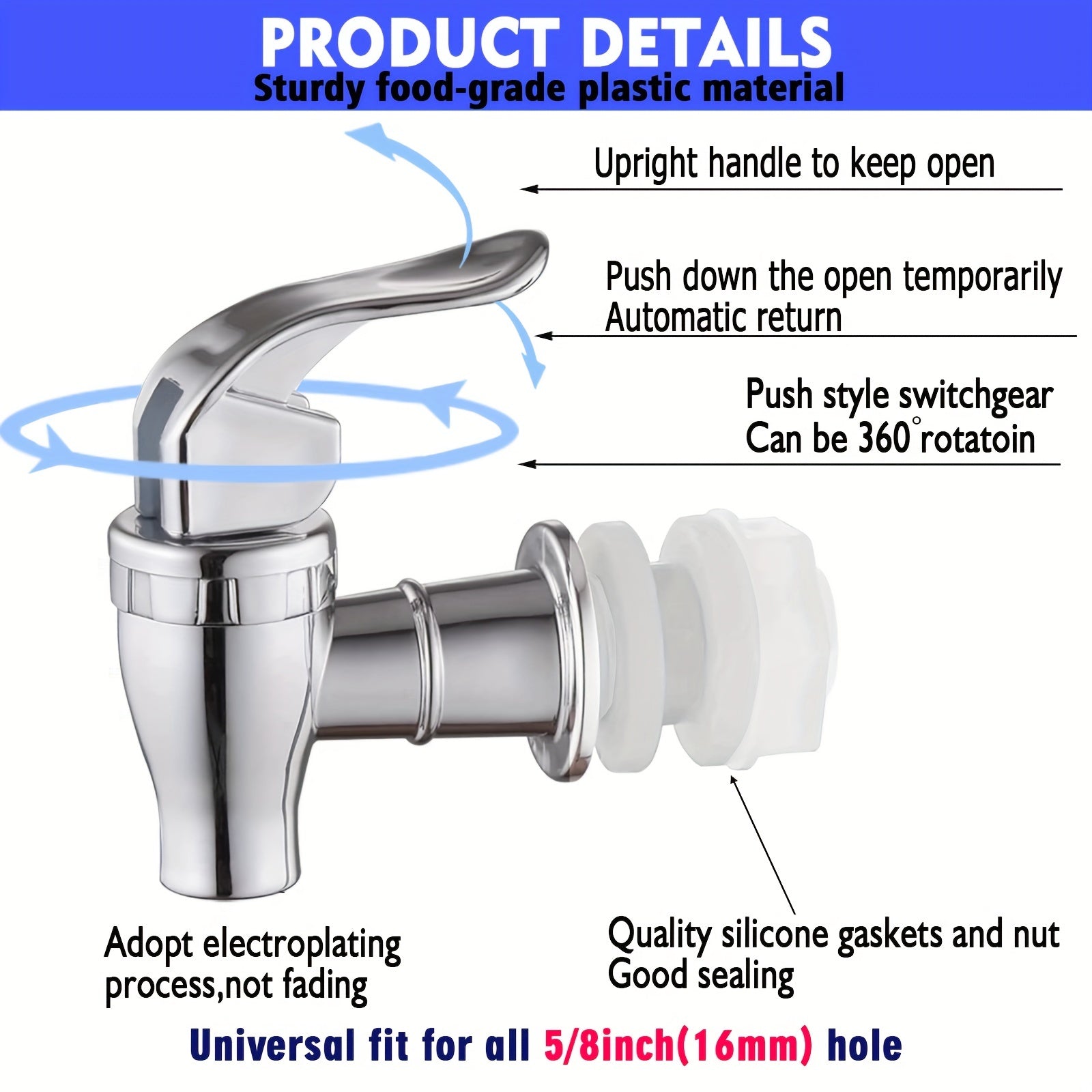 4 ta Spigot to'plami ichimlik tarqatgichlari uchun - Suv sovutgichlari uchun 7.57-18.93 litrli chelaklarga mos keladigan, plastmassadan yasalgan, almashtiriladigan leverli kranlar.