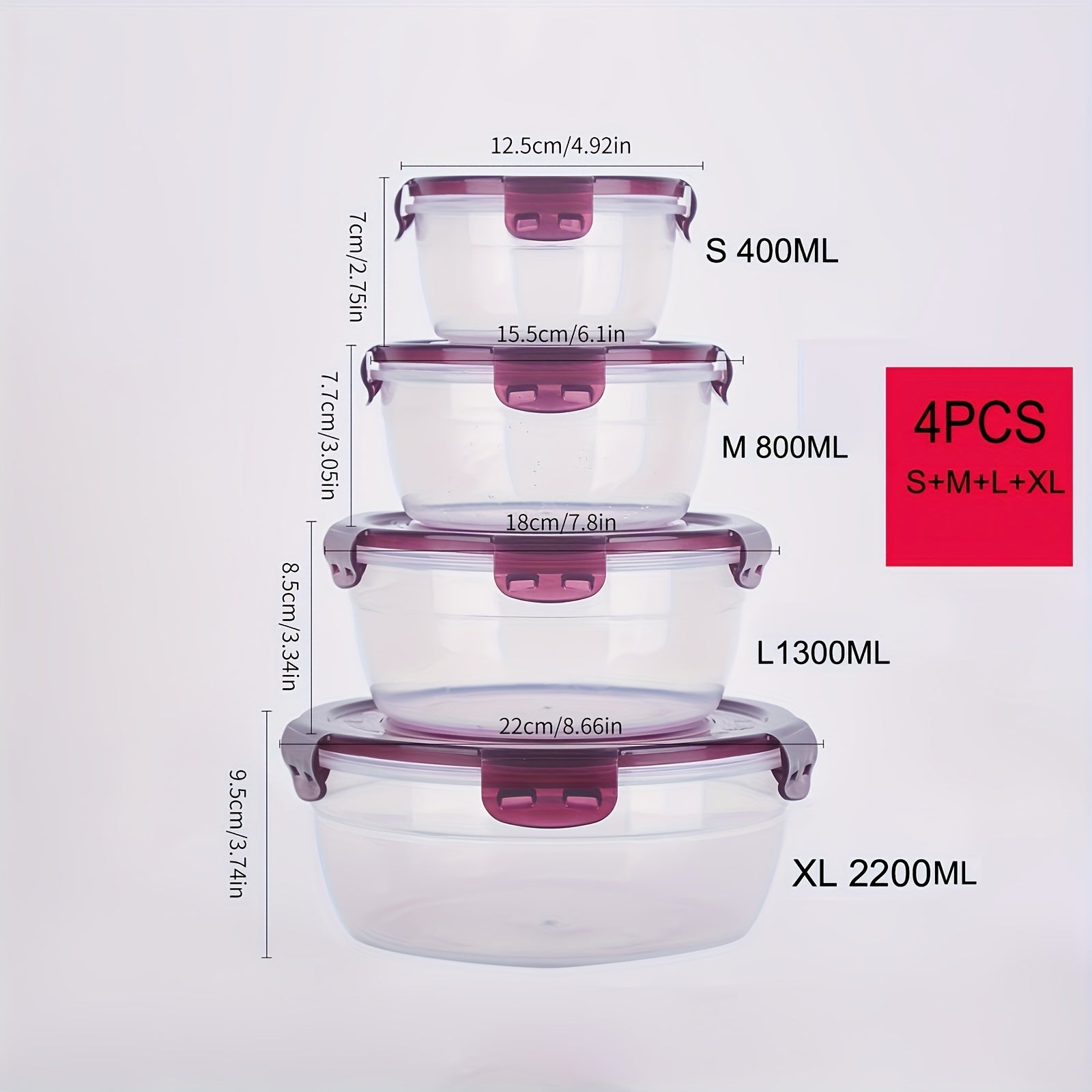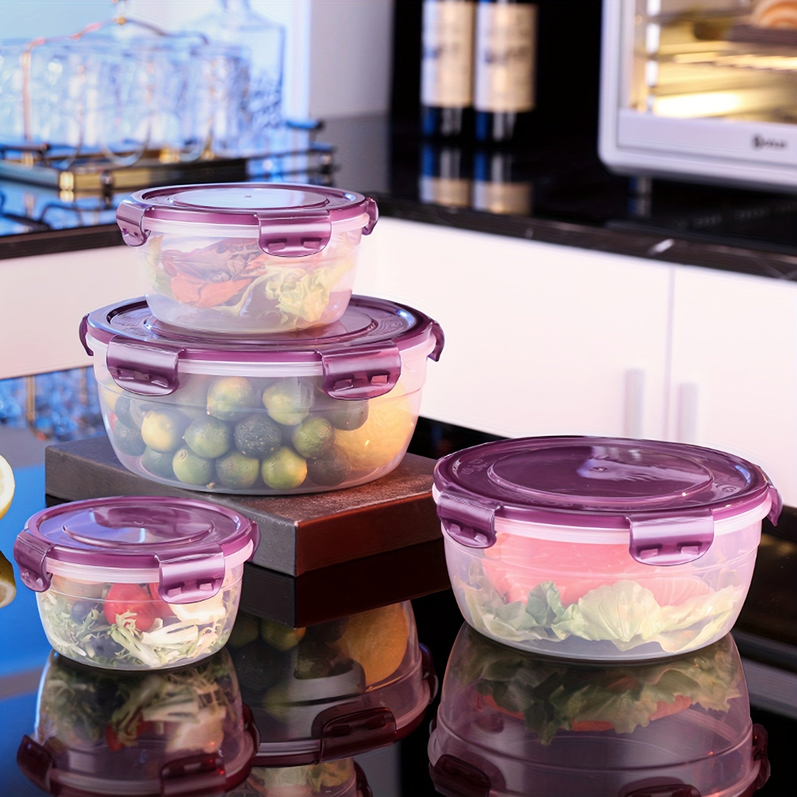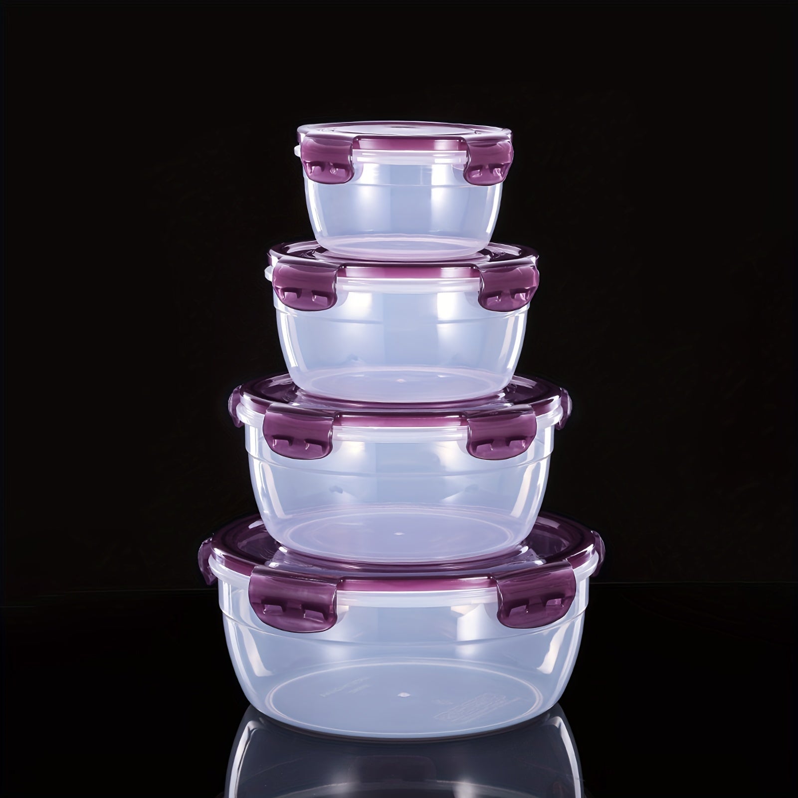 4 ta saqlash qutisi to'plami, zamonaviy dumaloq uslubda yangi oziq-ovqat saqlash uchun, muzlatgich va mikroto'lqinli pechda foydalanish uchun qulay va ko'chma idishlar, pikniklar, lagerda, maktabga qaytish uchun ajoyib.