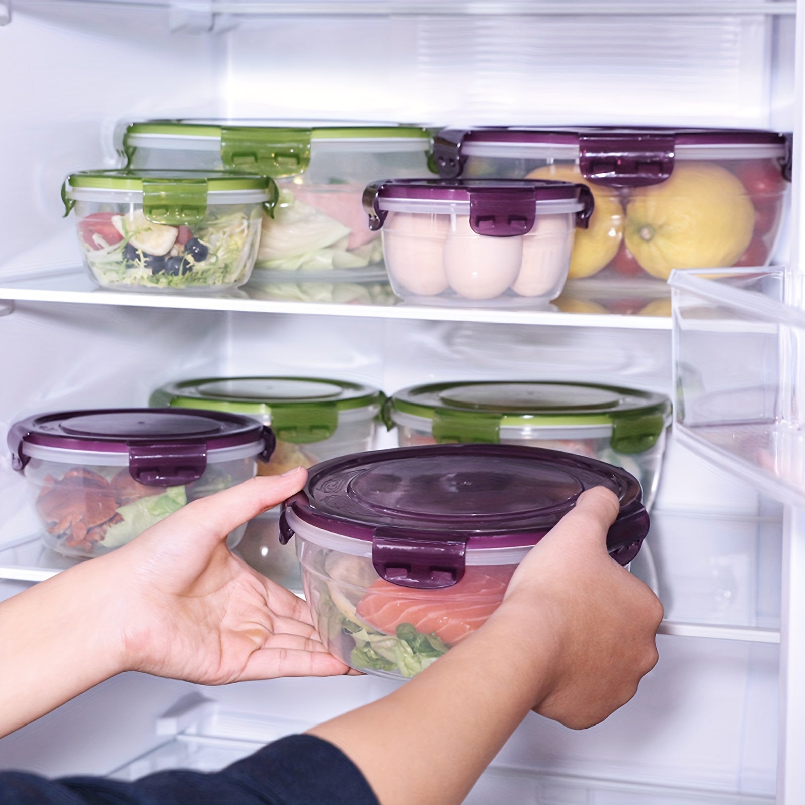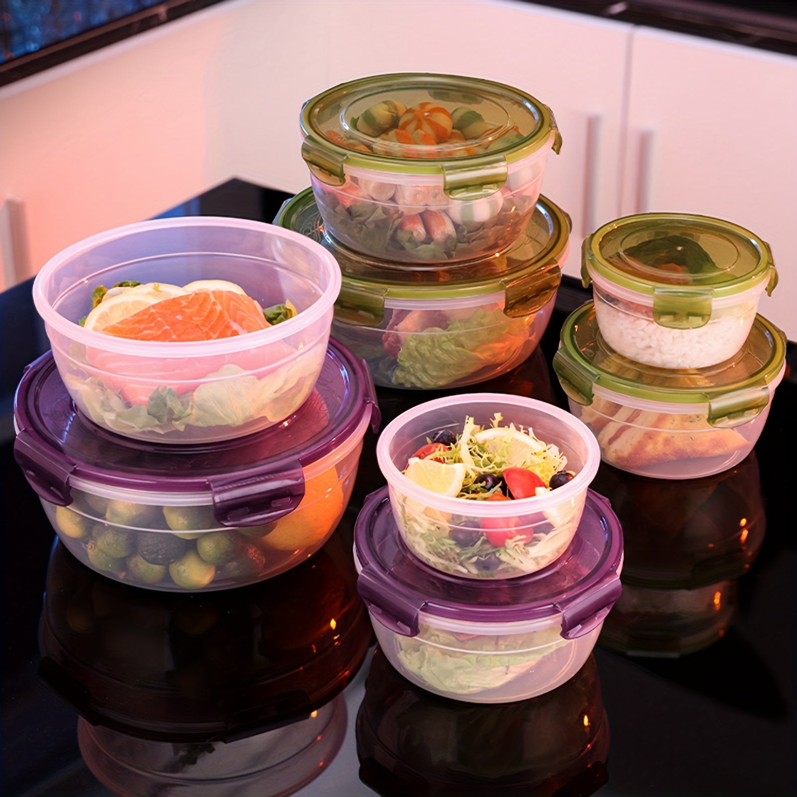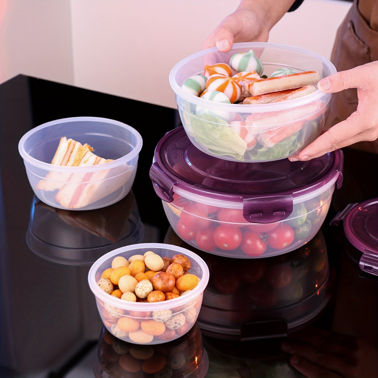 4 ta saqlash qutisi to'plami, zamonaviy dumaloq uslubda yangi oziq-ovqat saqlash uchun, muzlatgich va mikroto'lqinli pechda foydalanish uchun qulay va ko'chma idishlar, pikniklar, lagerda, maktabga qaytish uchun ajoyib.