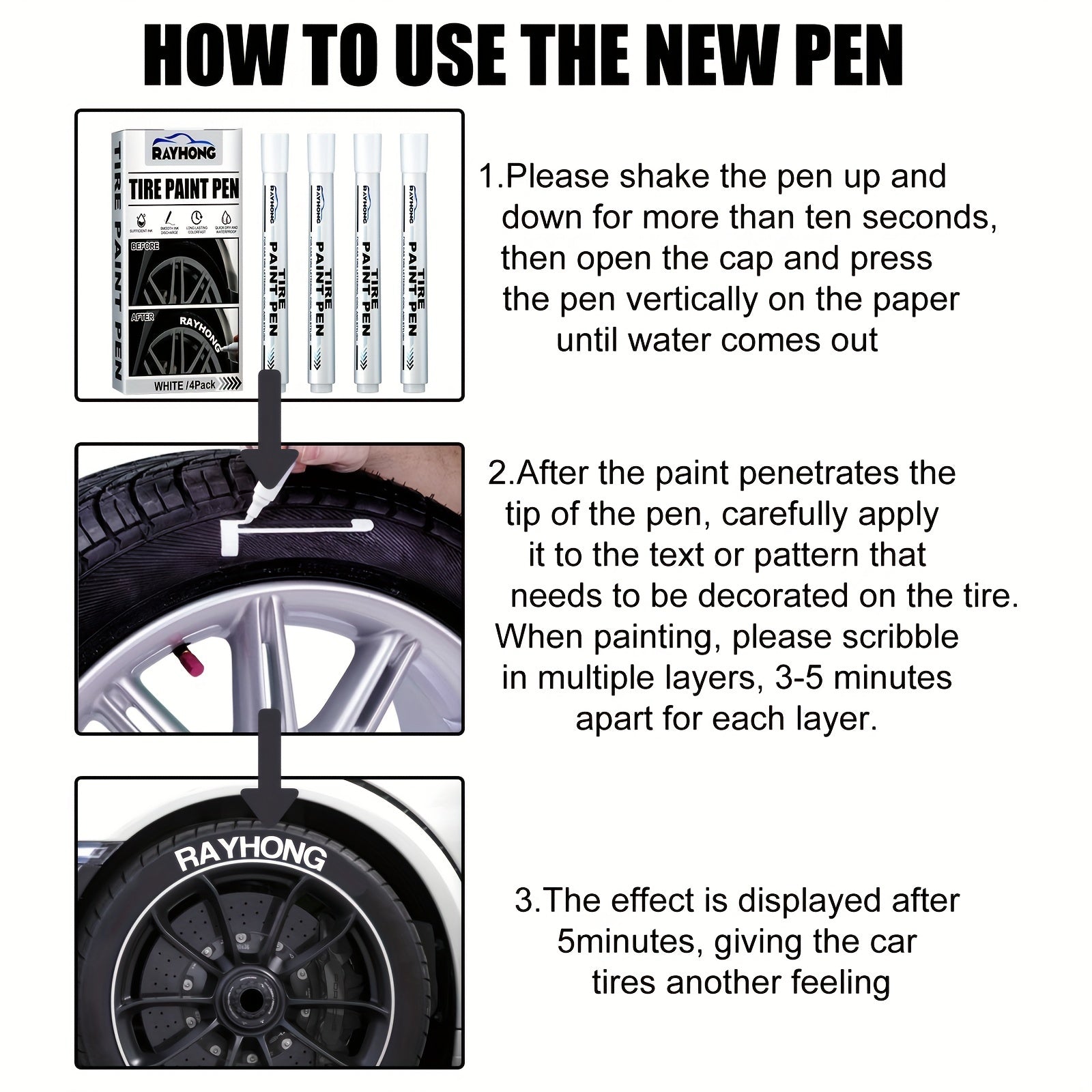 Avtomobilni sozlash va g'ildiraklarni bezash uchun 4 ta shisha g'ildirak bo'yash qalamlari to'plami