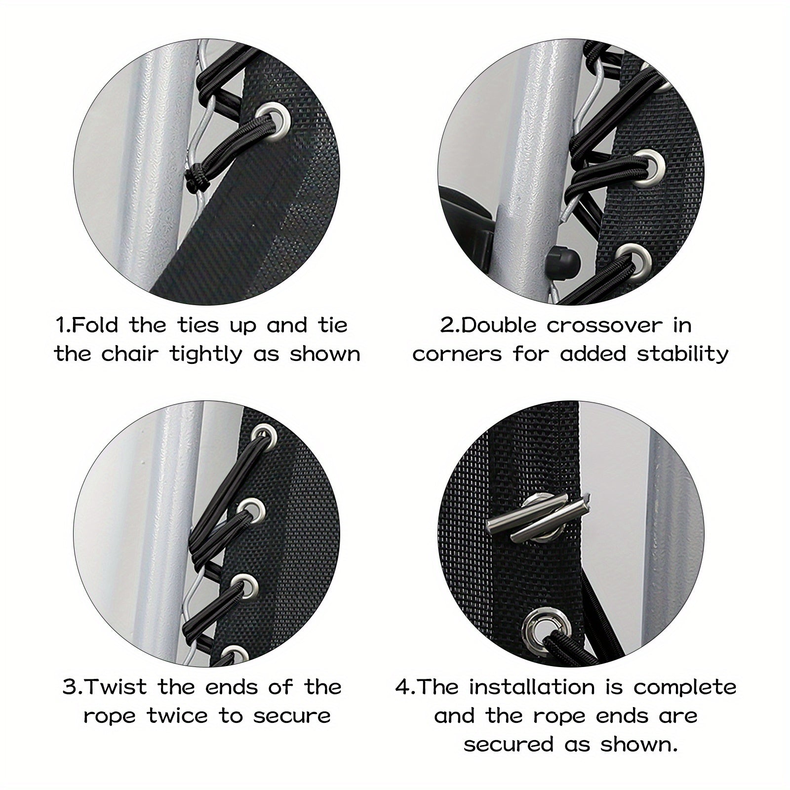 4 ta Universal O'rnini bosuvchi Elastik Bungee Iplar Zero Gravity Stul, Recliner va Lounge Stul uchun - Qora