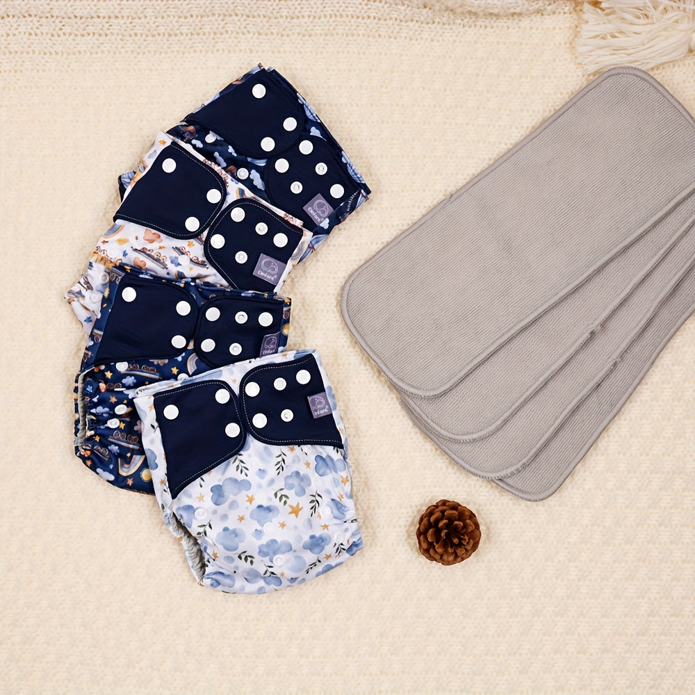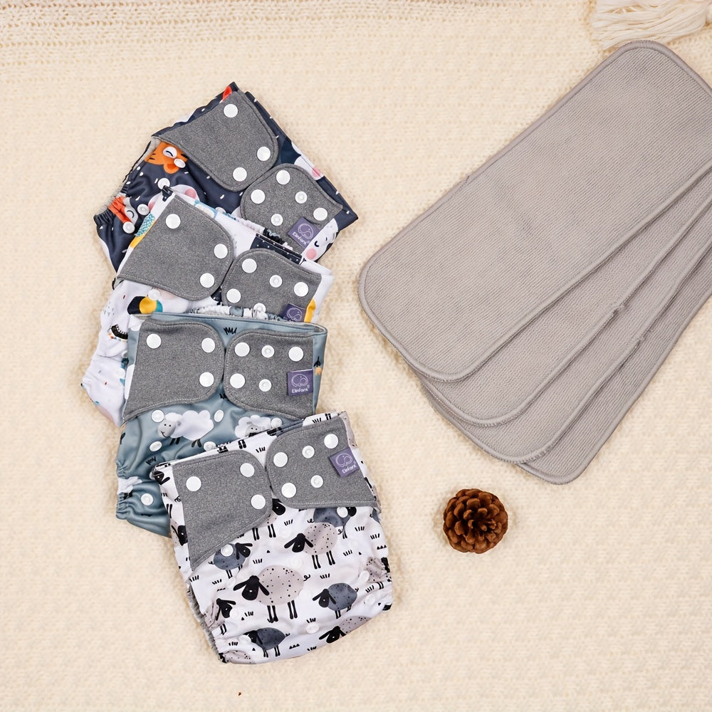 4 ta suv o'tkazmaydigan, yuviladigan mato pampers to'plami, 4 ta 3-qavatli mikrofiber singdiruvchi qo'shimchalar bilan birga.