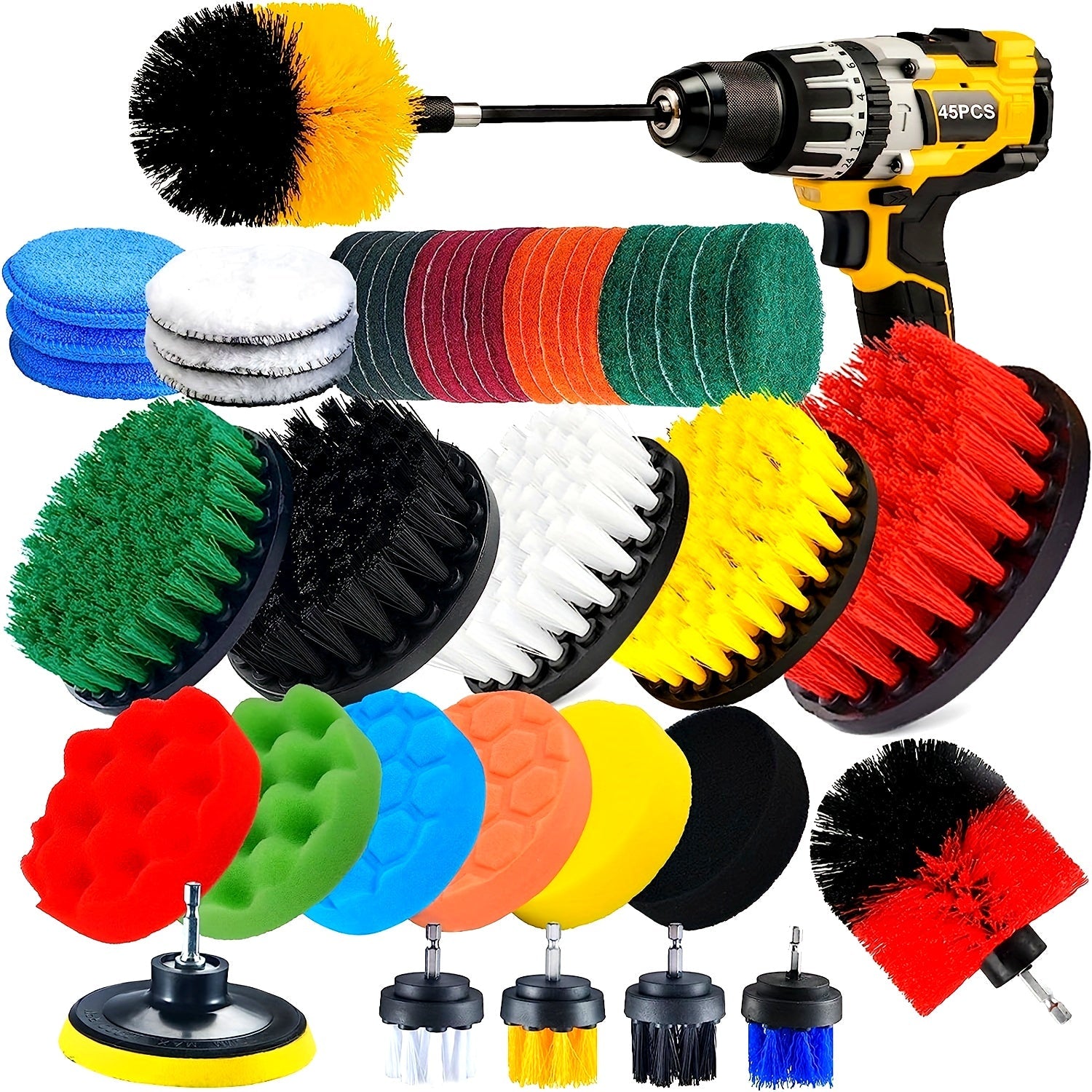 45-Donalik burg'ulash cho'tkasi to'plami, qirqish cho'tkalar va gubka bilan, g'isht, plitka, avtomobil g'ildiraklari uchun