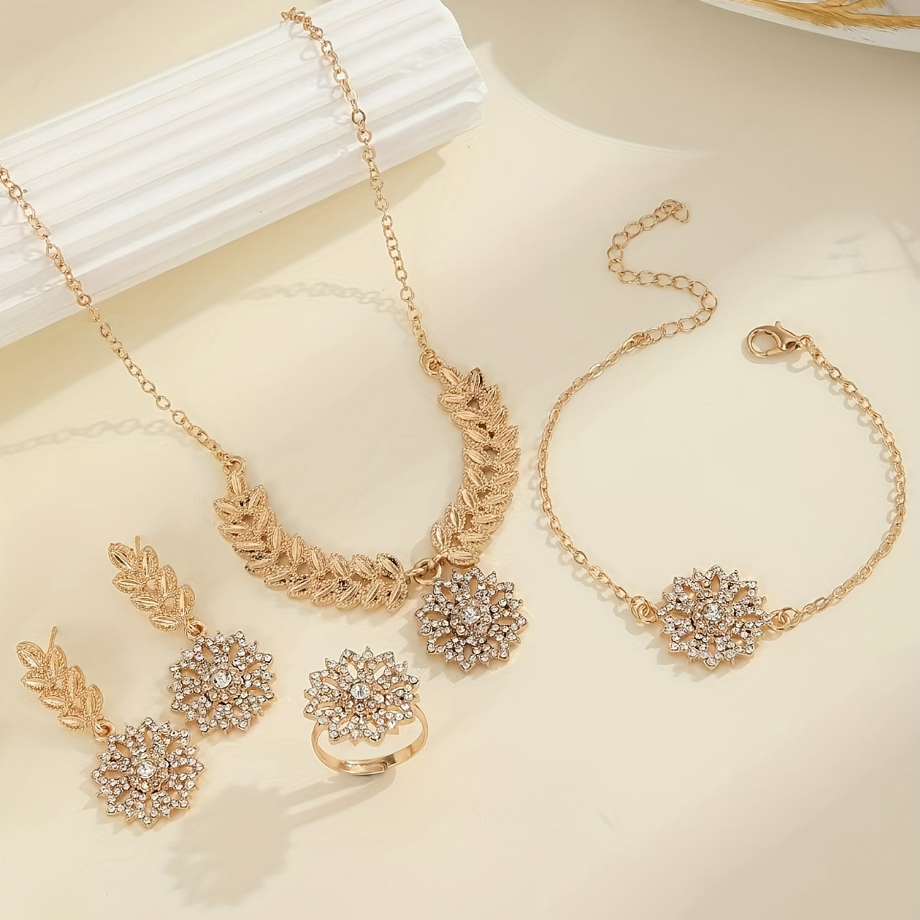 Bohemiya gul bezaklar to'plami, rhinestone bilan Yevropa xudosi ayollar uchun quloq taqish, bilaguzuk, uzuk