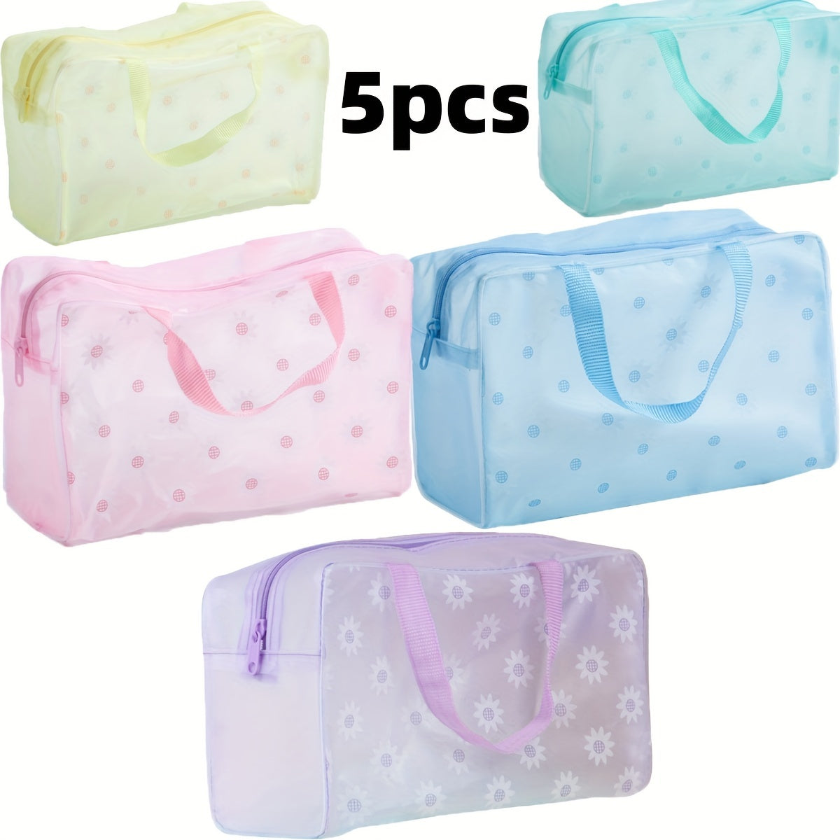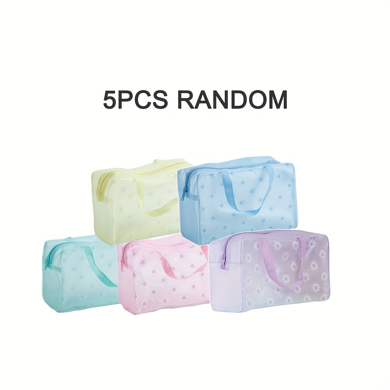 5 ta rangli bosma shaffof muzlatilgan suv o'tkazmaydigan fermuarlı saqlash sumkalari to'plami - yengil va yuvilishi mumkin, bolalar uchun sayohat zaruriyatlari uchun ideal