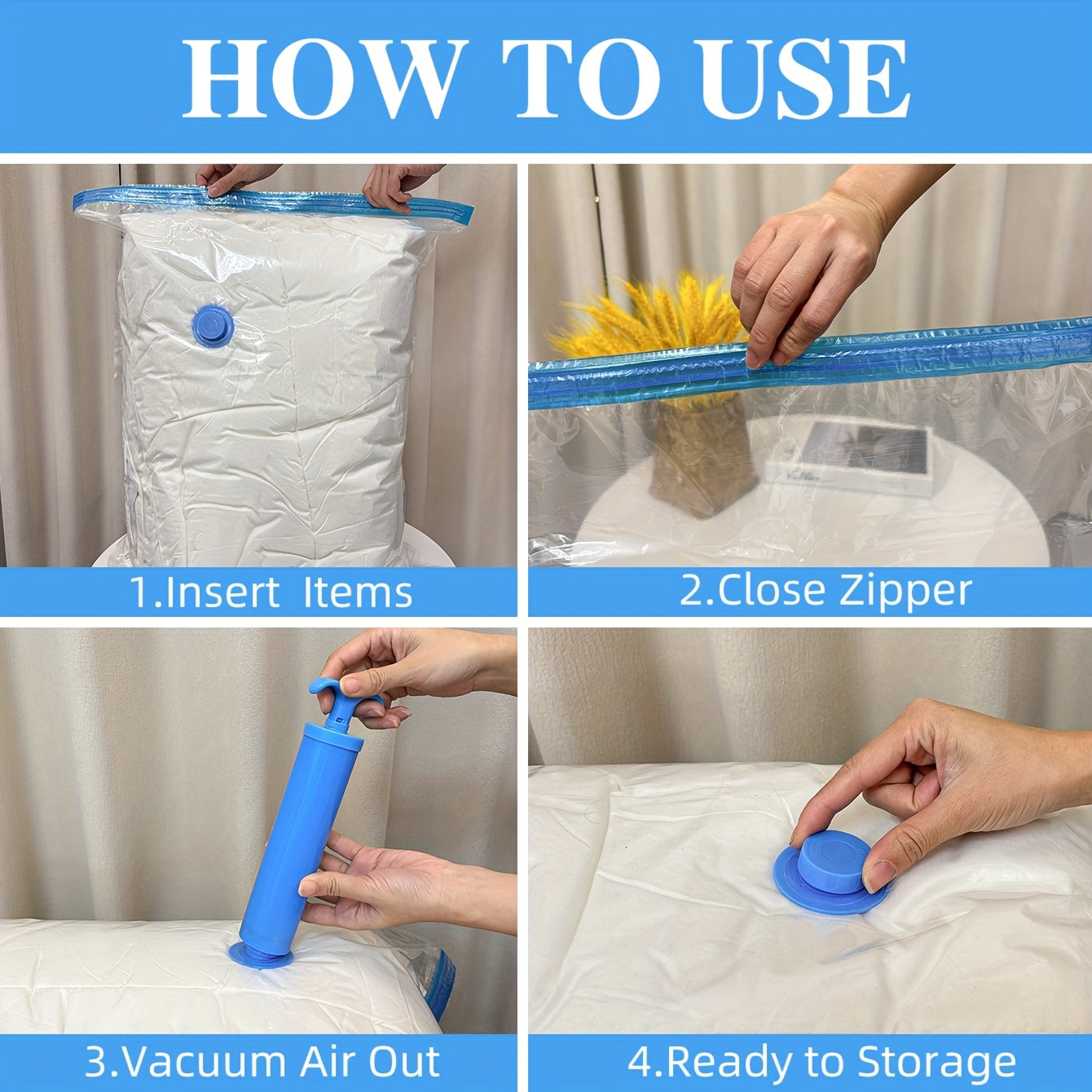 5 ta vakuum siqish saqlash sumkasi to'plami, qo'l pompasi bilan kiyimlar, yostiq va sayohat uchun