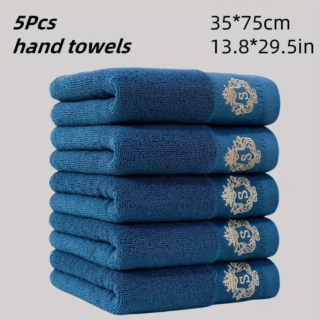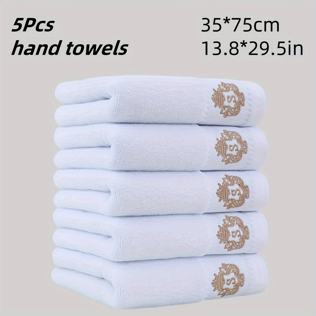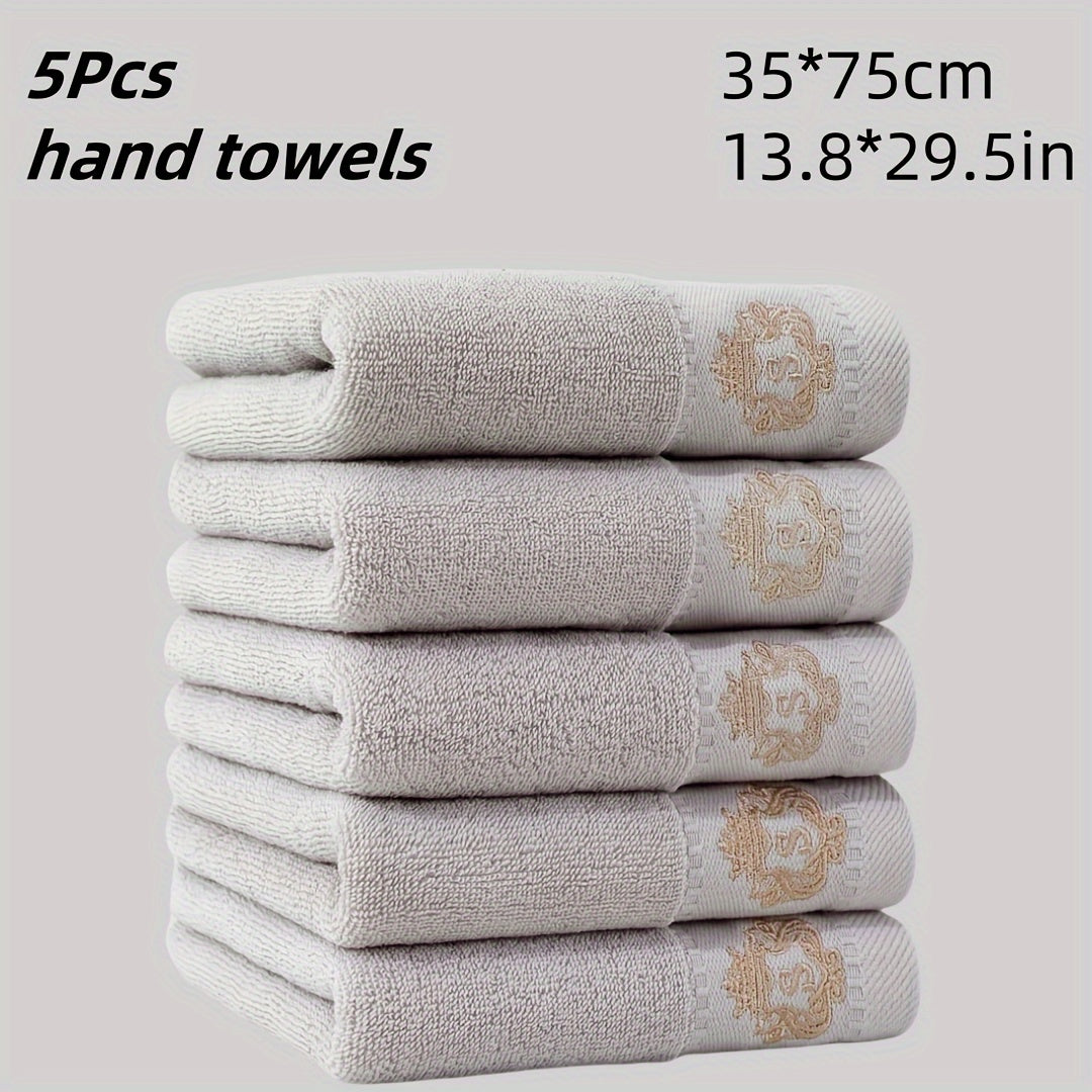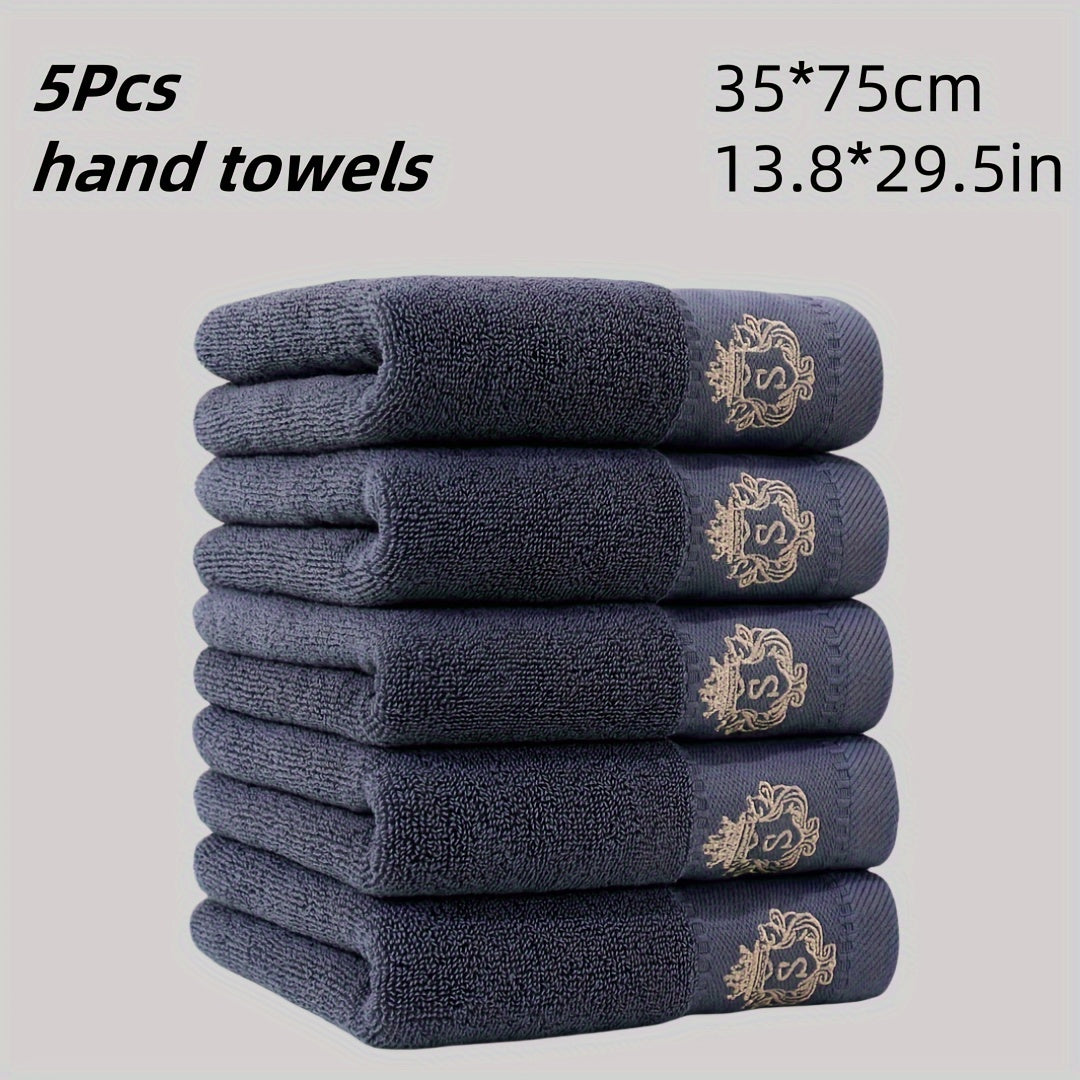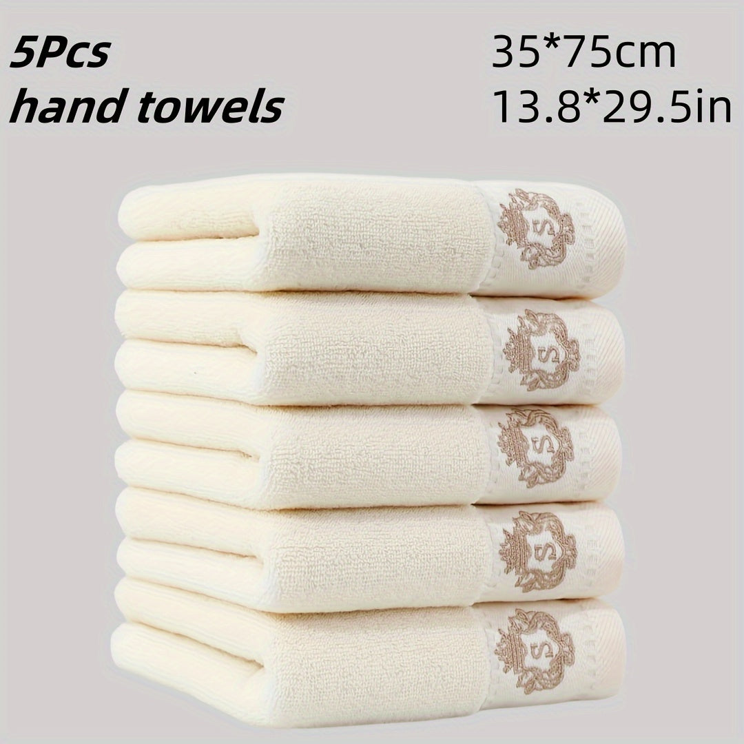 5 ta paxta qo'l sochiq to'plami, singdiruvchi va tez quriydigan, tikuvli dizaynlar bilan. Zamonaviy to'qilgan uzun kvadrat fazo mavzusidagi yumshoq, teriga do'st hammom sochiqlari.