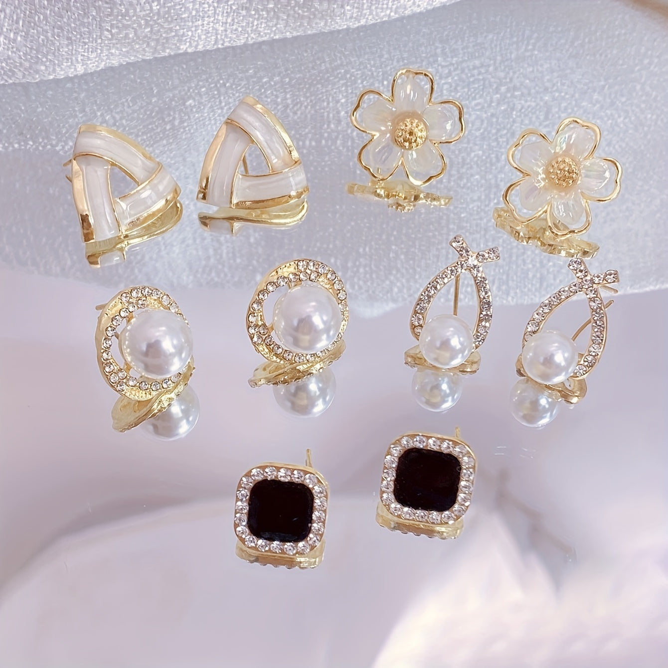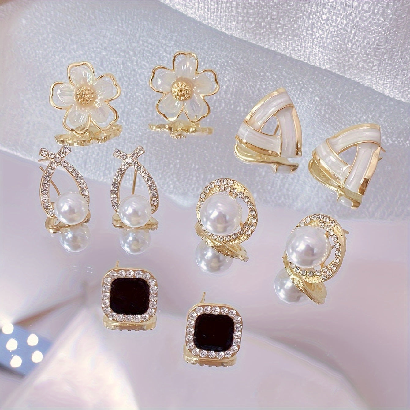 5 ta nozik gullar suv tomchisi dizayni bilan bezatilgan stud quloq bilaguzuklari, vintage uslubida, ayollar uchun Yangi yil sovg'asi.