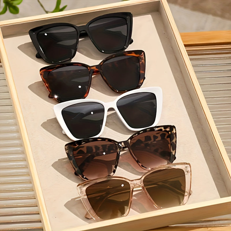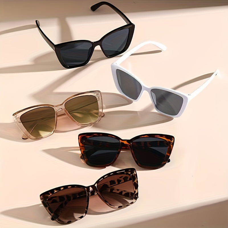 5 ta retro rangli mushuk ko'zoynaklari to'plami, oddiy kvadrat ramkalar bilan, moda, sayohat, haydash va partiyalar uchun mukammal. Do'konda ulgurji sotish uchun mavjud.