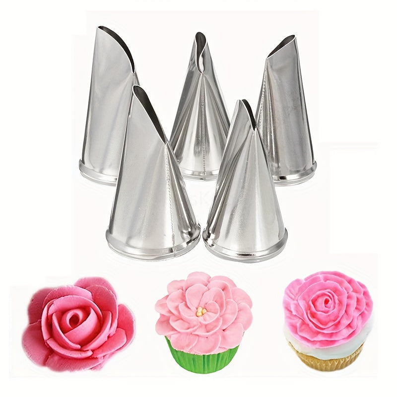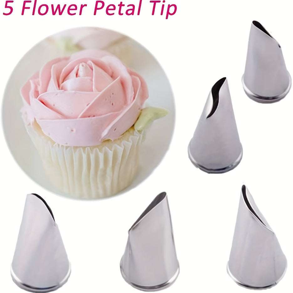Tort va keklarni bezash uchun 5 ta zanglamaydigan po'latdan yasalgan gül petali pipping tiplari to'plami