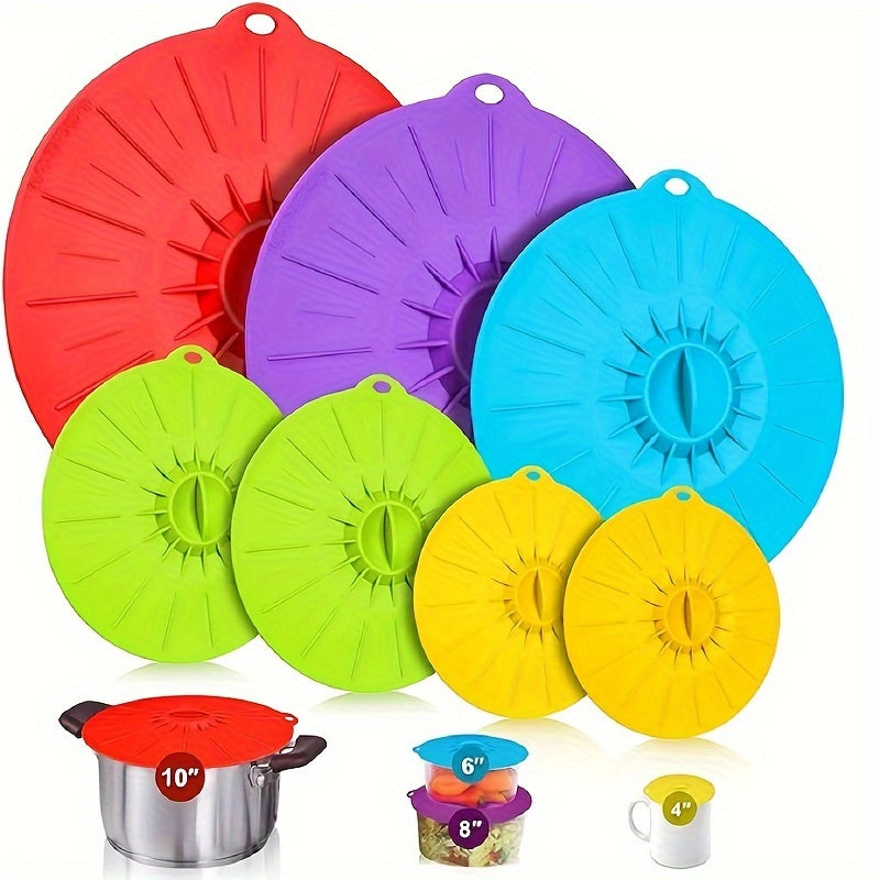 5 ta silikondan tayyorlangan yopqichlar to'plami, issiqlikka chidamli, BPAsiz, idishlar va qozonlar uchun idishlar va qoplamalar, idishlar uchun mos