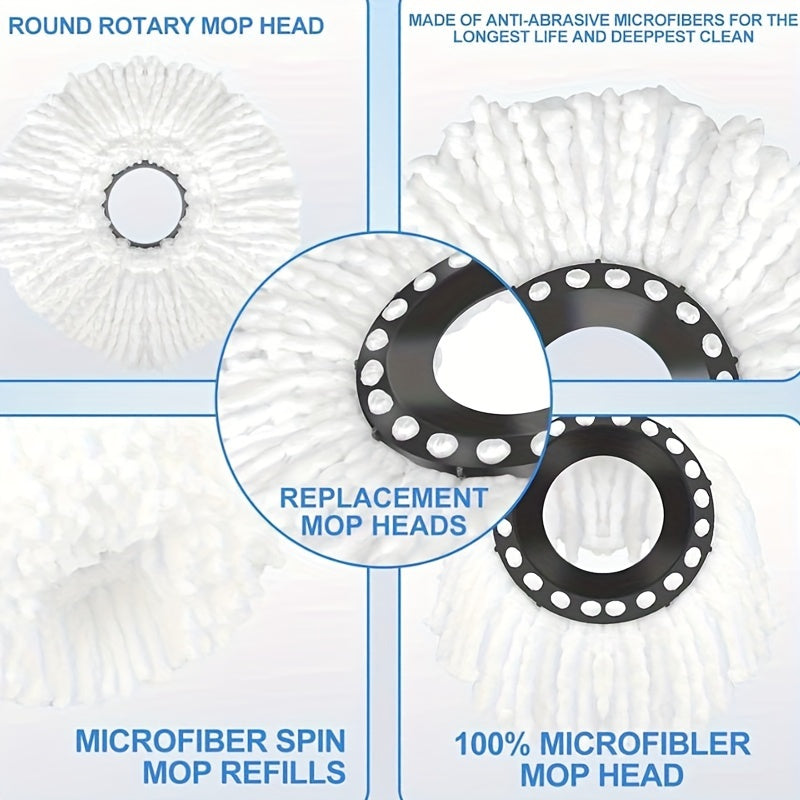 5 ta Spin Mop o'rnini bosuvchi boshlar to'plami, dumaloq standart o'lchamdagi mikrofiber to'ldiruvchilar, oson tozalanadigan Hurricane aylanuvchi mop bosh