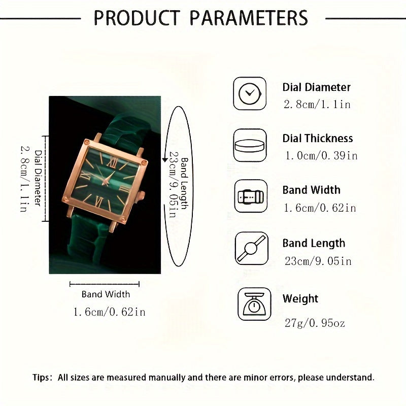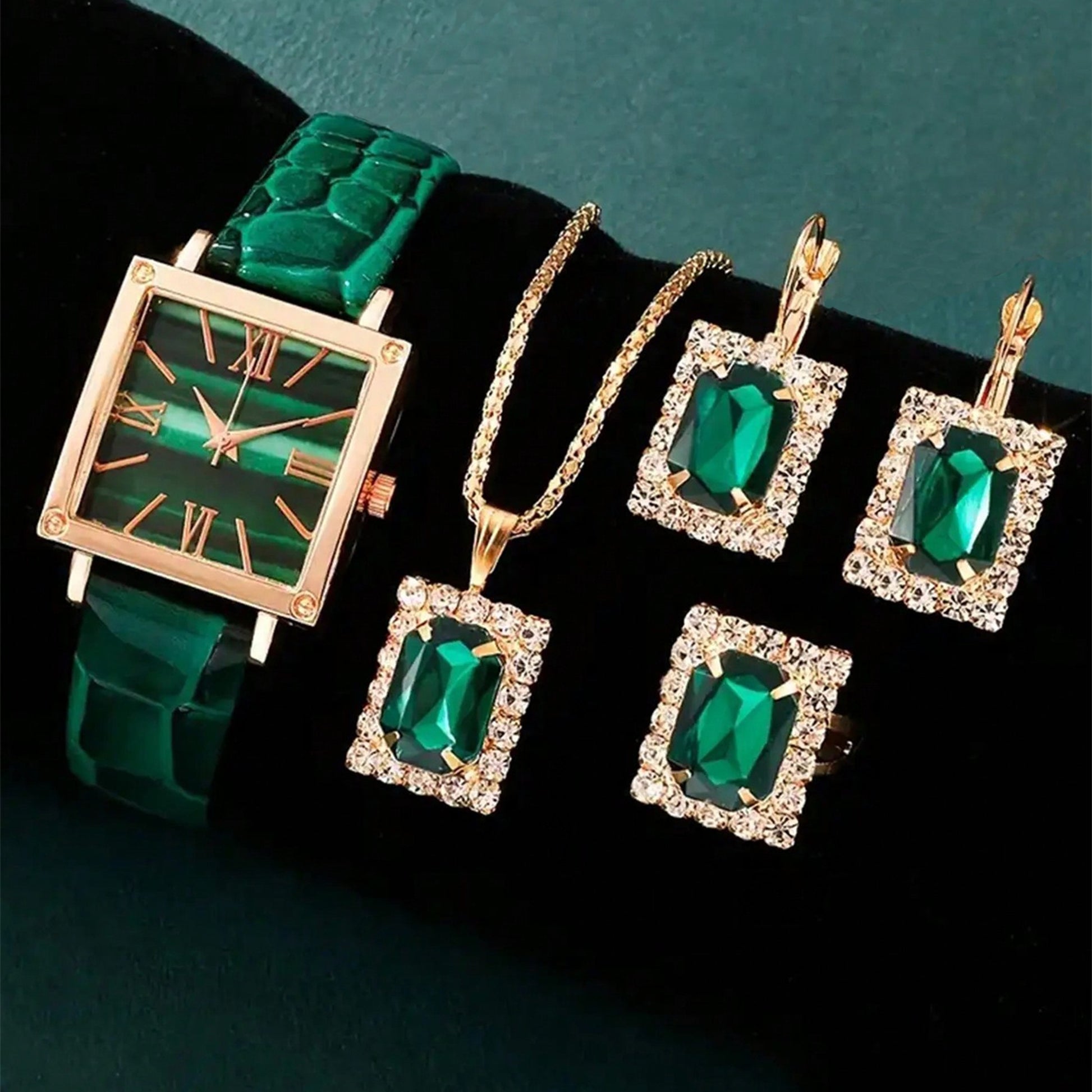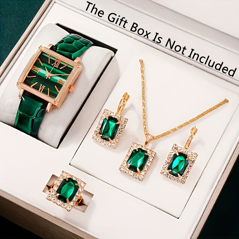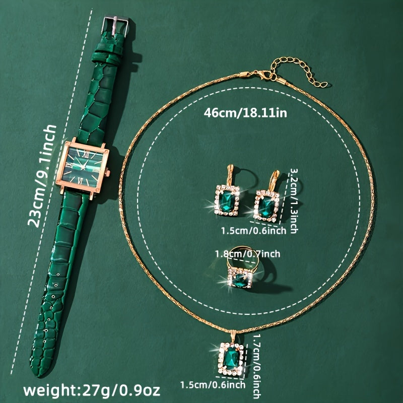 5 ta ayollar uchun vintage kvadrat kvarts soatlari to'plami, PU charm bilan taqilgan va sintetik toshli zargarlik buyumlari bilan
