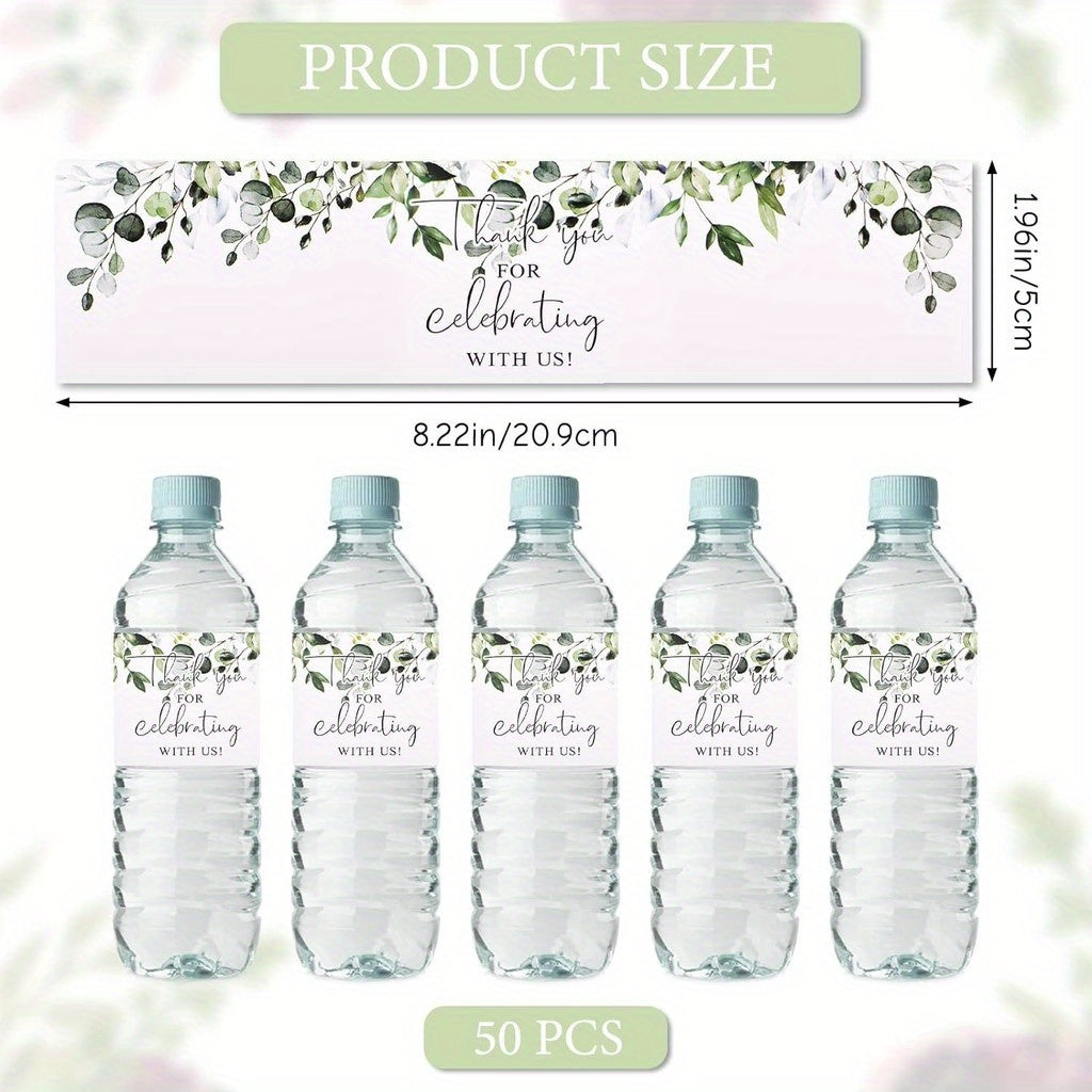 50 ta Nafis Yashil O'simliklar Suv Shishasi Etiketkalari - To'ylar, Tug'ilgan kunlar va Qizlar uchun Ideal | Har qanday ichimlik idishlari uchun uzoq muddatli Rahmat stikerlari