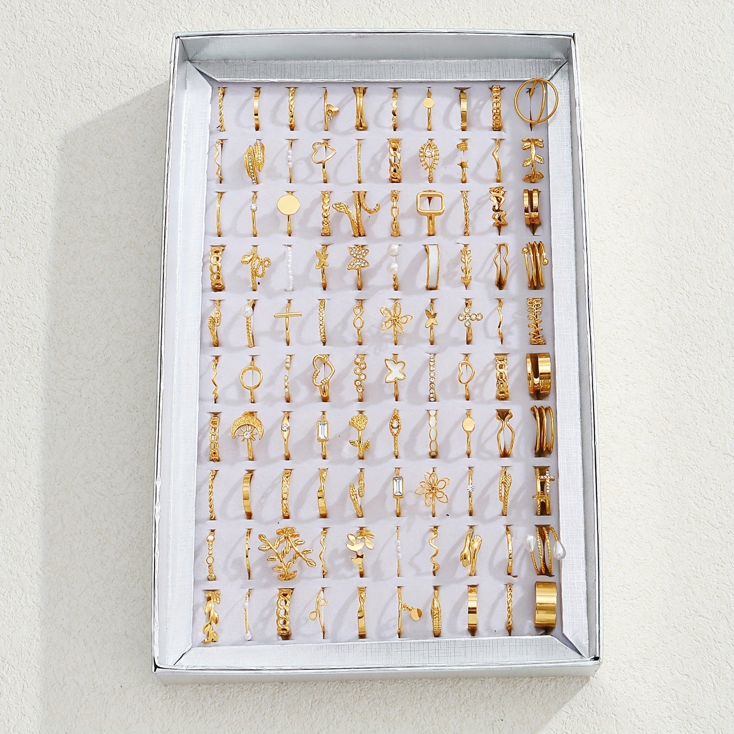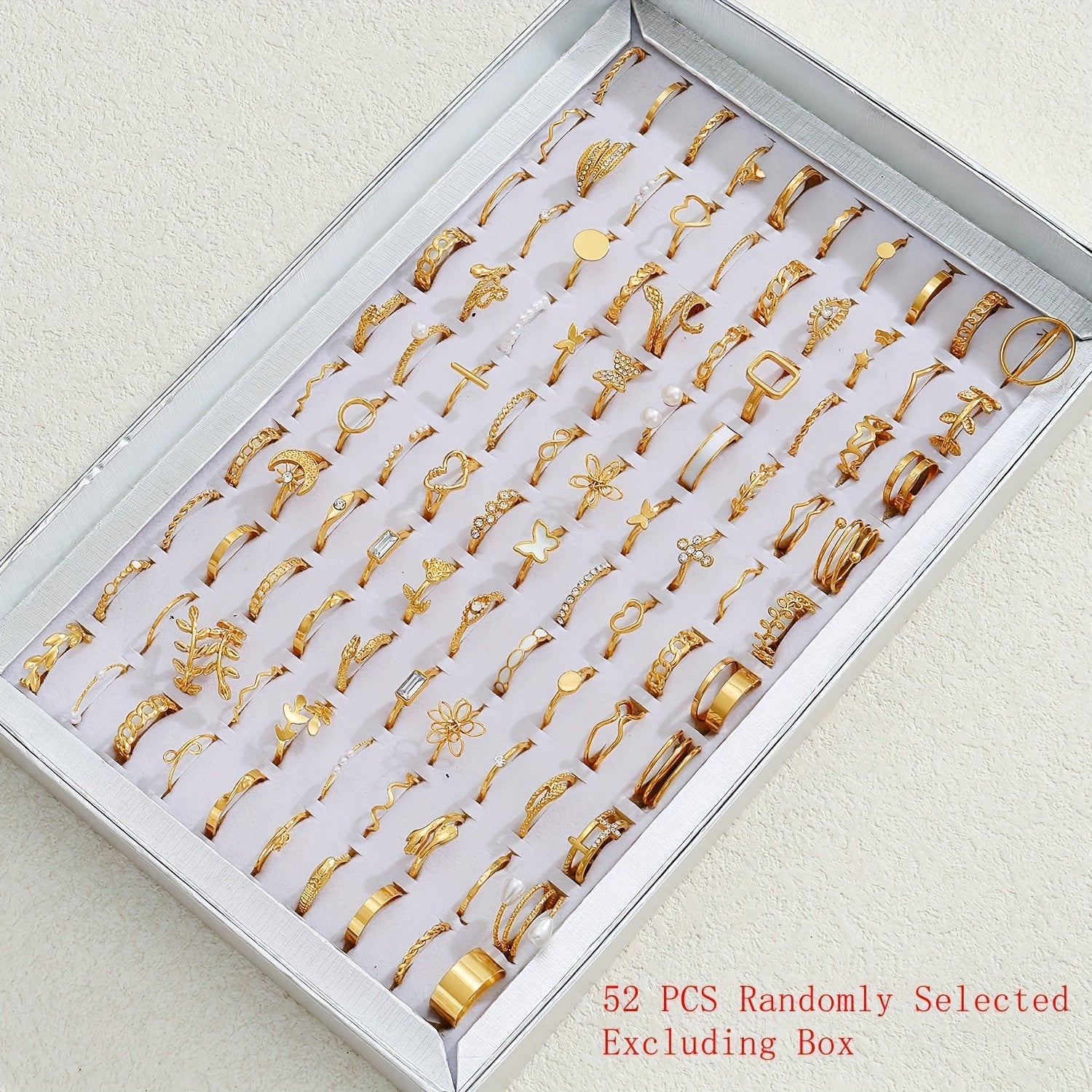 Ayollar uchun oddiy uslubdagi alyumindan tayyorlangan 52 ta aralash yurak, kapalak, barg va geometrik turdagi uzuklar to'plami. Bu ko'p qirrali moda aksessuarlar kundalik kiyim uchun ideal bo'lib, barcha fasllarga mos keladigan turli dizaynlarga ega.