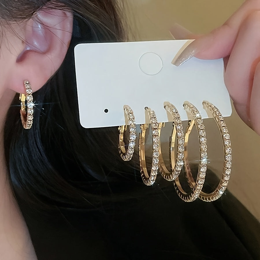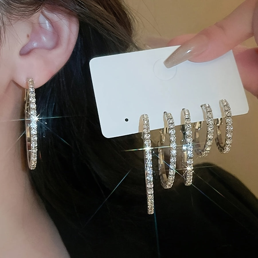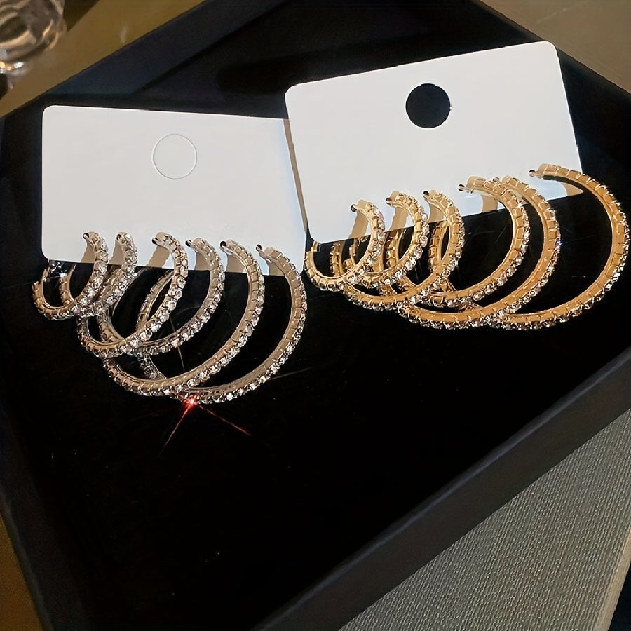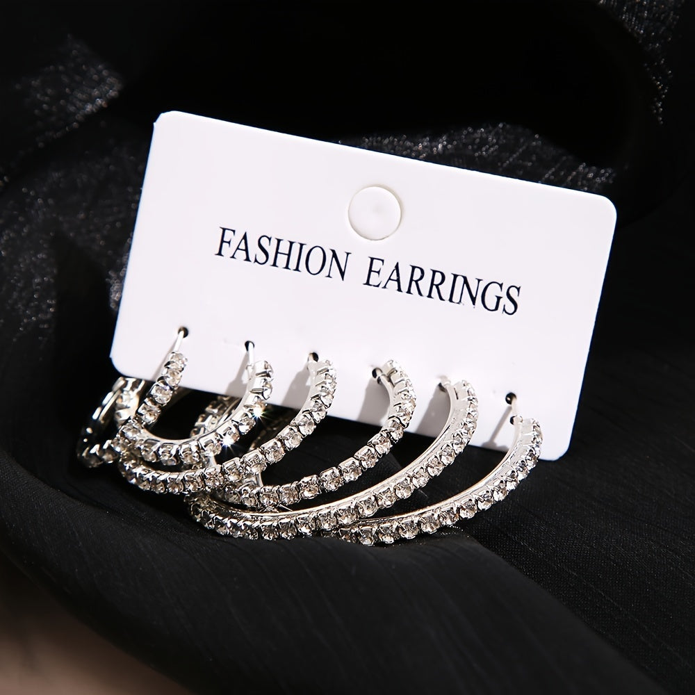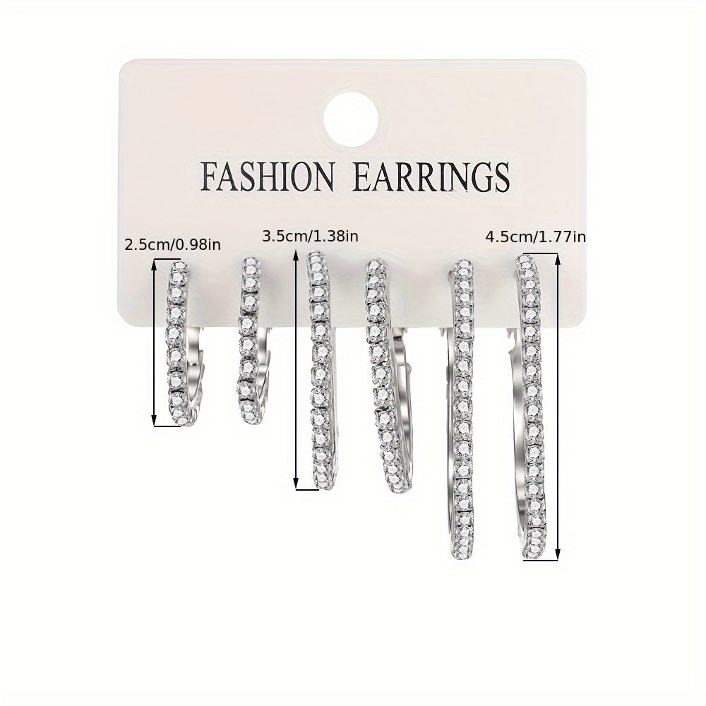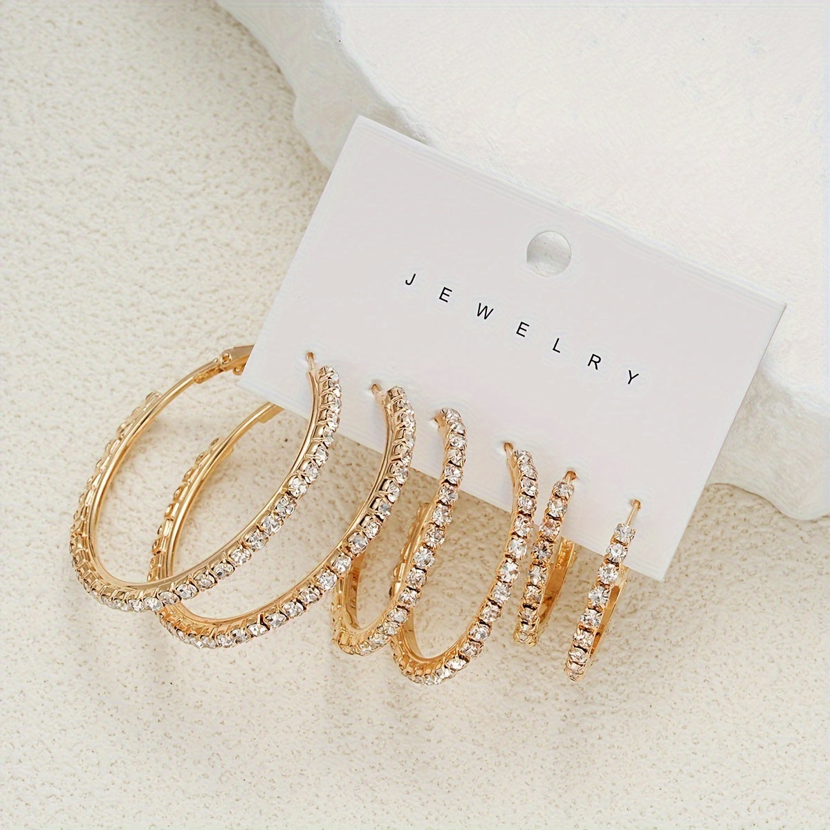 6 ta Nafis Halqa Sirg'alar to'plami, Porloq Rhinestone'lar bilan, Rux Qotishmasi va Noxush Po'latdan yasalgan, Qoplamasiz - Ayollar uchun Ta'til yoki Kundalik kiyish uchun Zamonaviy Zargarlik.