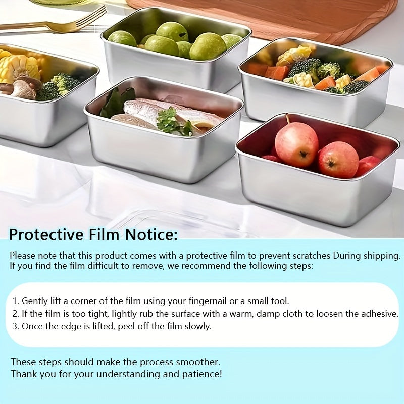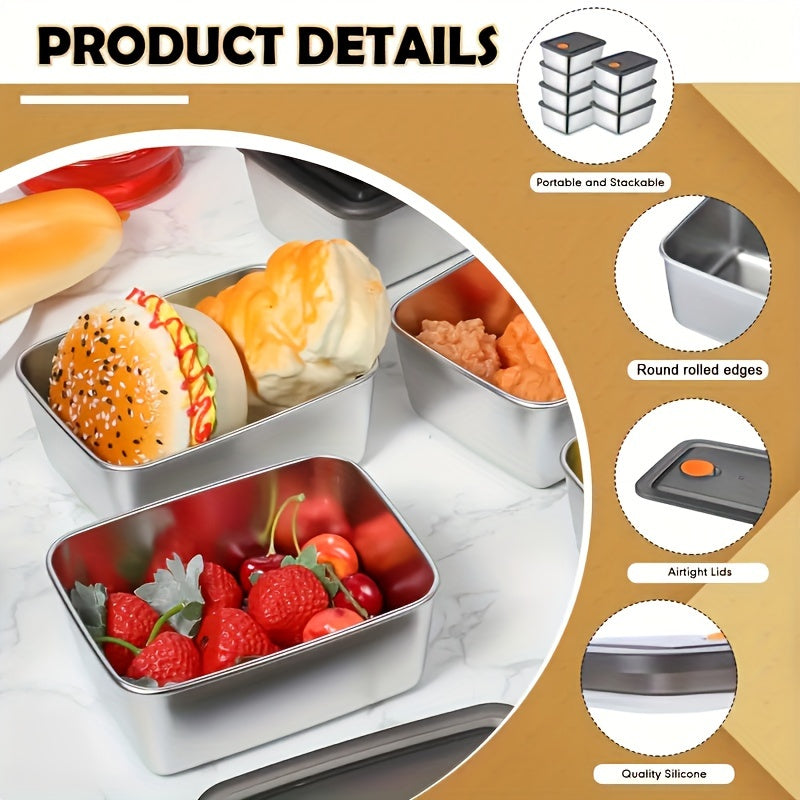 6 ta zanglamaydigan po'latdan yasalgan oziq-ovqat saqlash konteynerlari to'plami, qopqog'lar bilan, suyuqlik o'tkazmaydigan, bosiladi